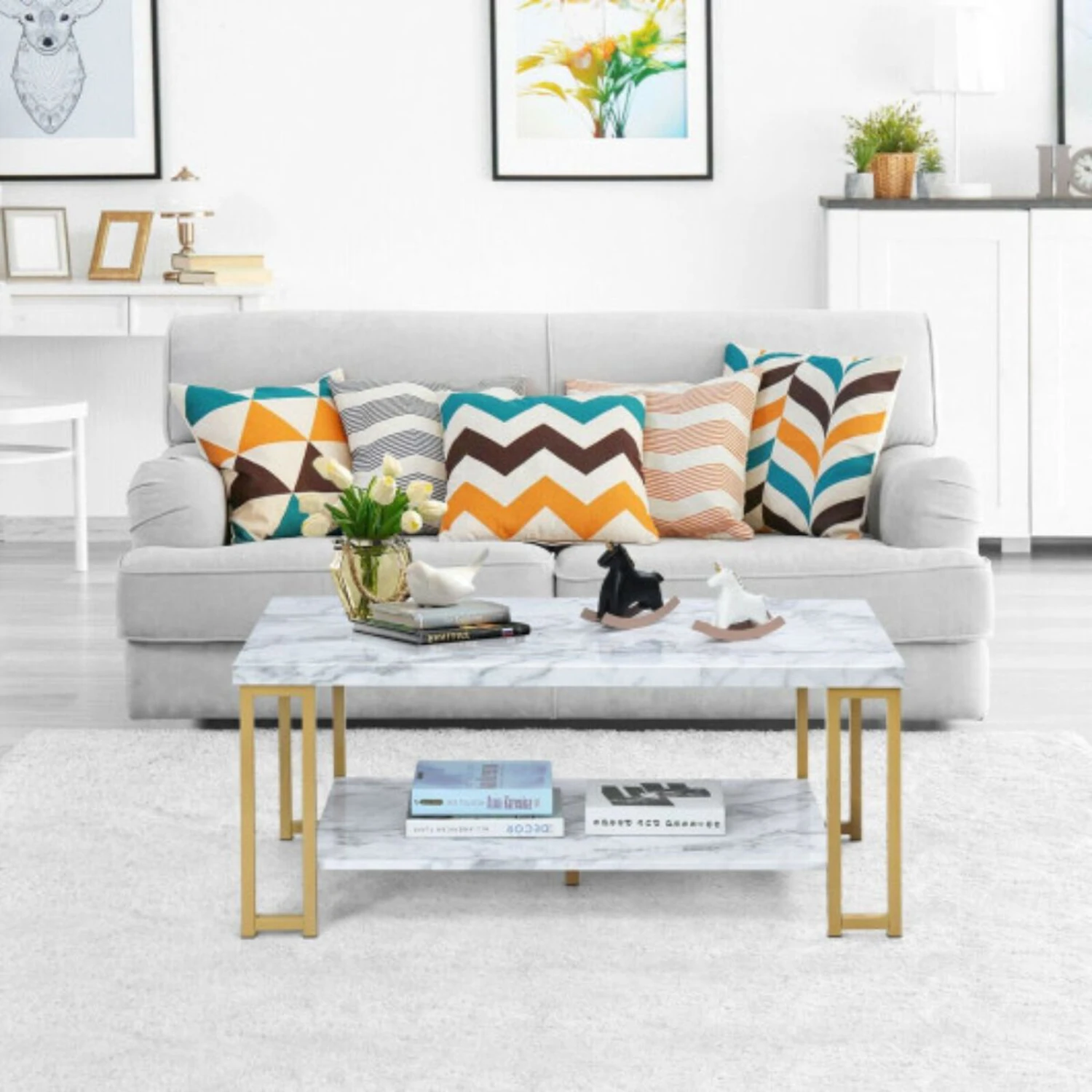 2-Tier Rectangular Modern Coffee Table with Gold Print Metal Frame