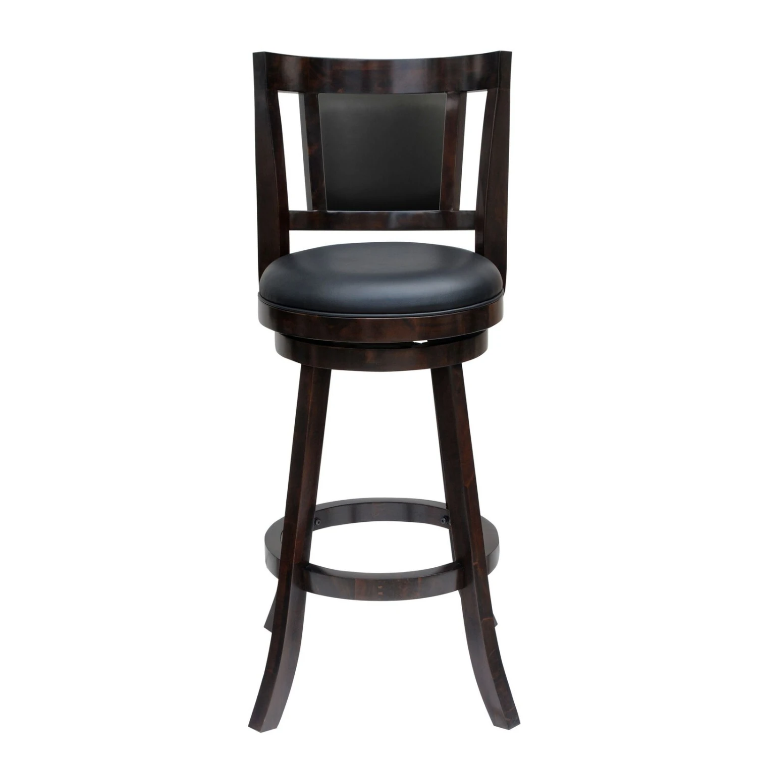 29 Inches Swivel Wooden Frame Counter Stool with Padded Back, Dark Brown-Benzara