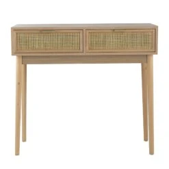Add this 3 piece vanity to your bedroom to put on makeup and do your hair in style. It includes a vanity table, mirror, and backless stool which is made from a blend of solid wood and veneer, Featuring 2 drawers for additional ample interior storage area for cosmetics and beauty supplies. The stool that creates comfort while doing makeup or your hair.