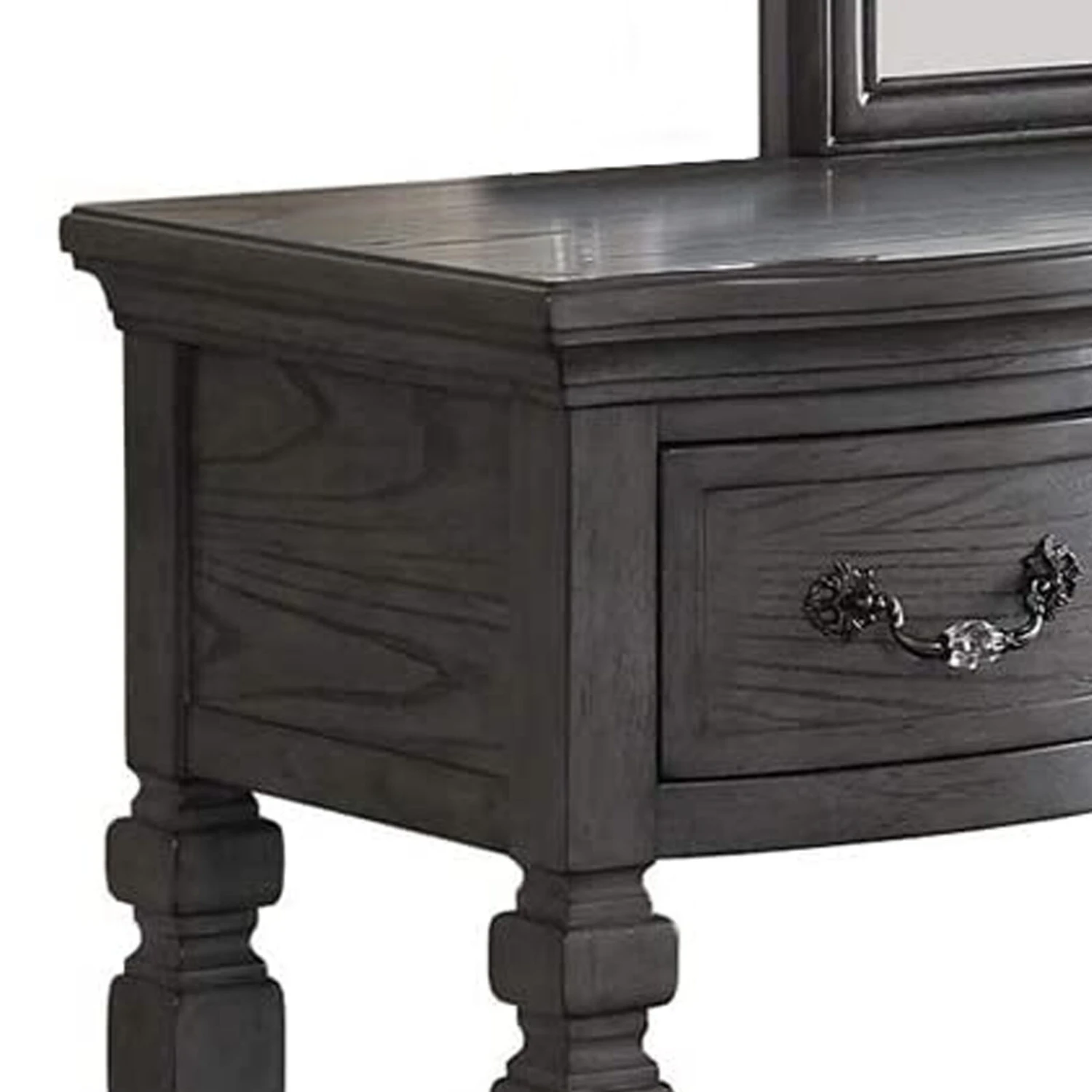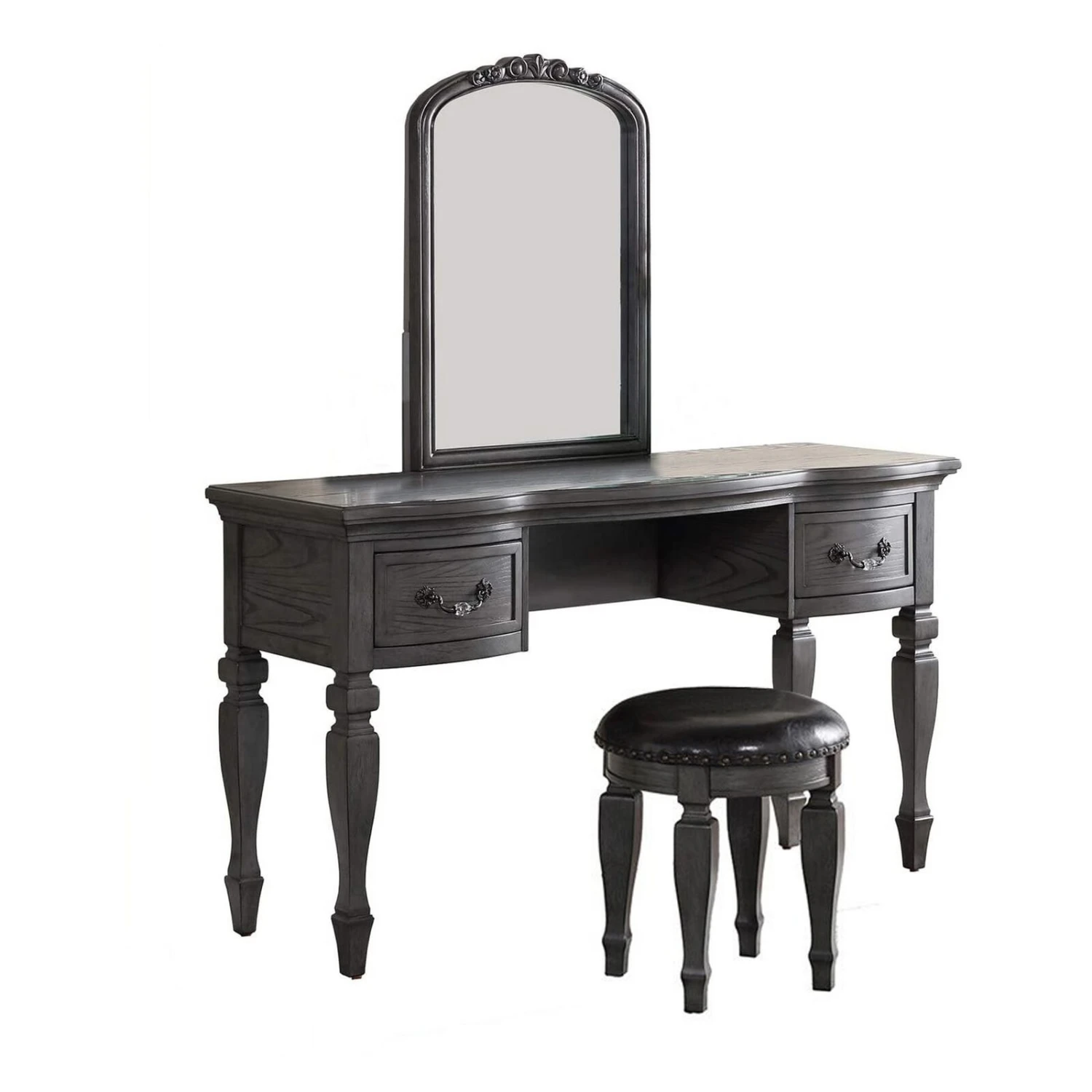 3 Piece Vanity Set with Carved Mirror and Turned Legs, Gray-Benzara