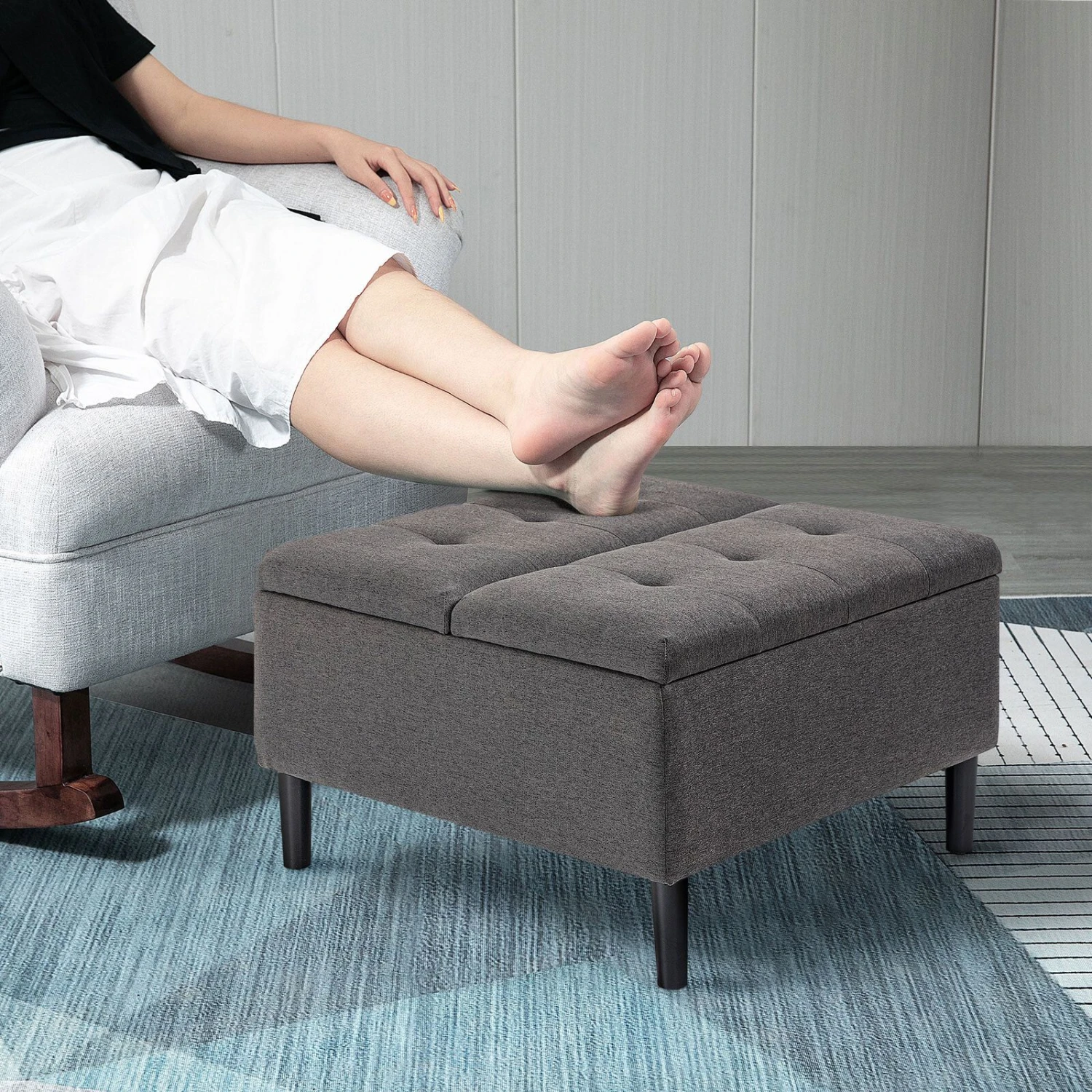 - – STURDY BUILT The ottoman features four short rubberwood legs. A soft cushioned seat and breathable linen-touch polyester fabric deliver exceptional comfort and relaxation.