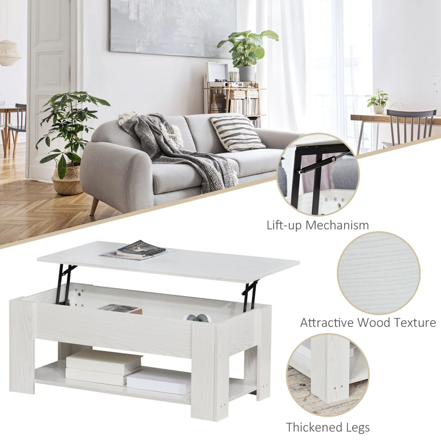 39″ Lift Top Coffee Table with Hidden Storage Compartment and Open Shelf, Pop Up Coffee Table for Living Room, White