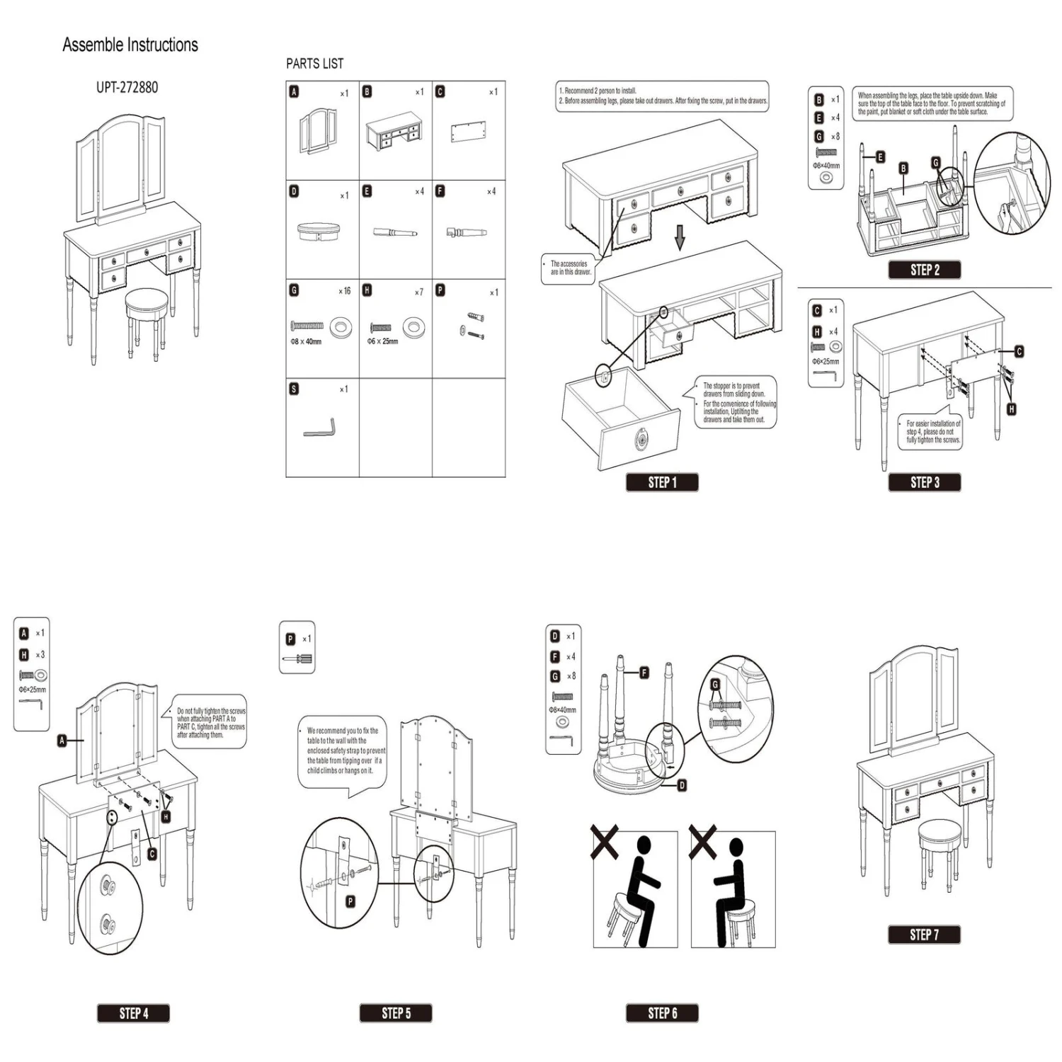 - Rectangular tabletop and a convenient removable tri fold mirror