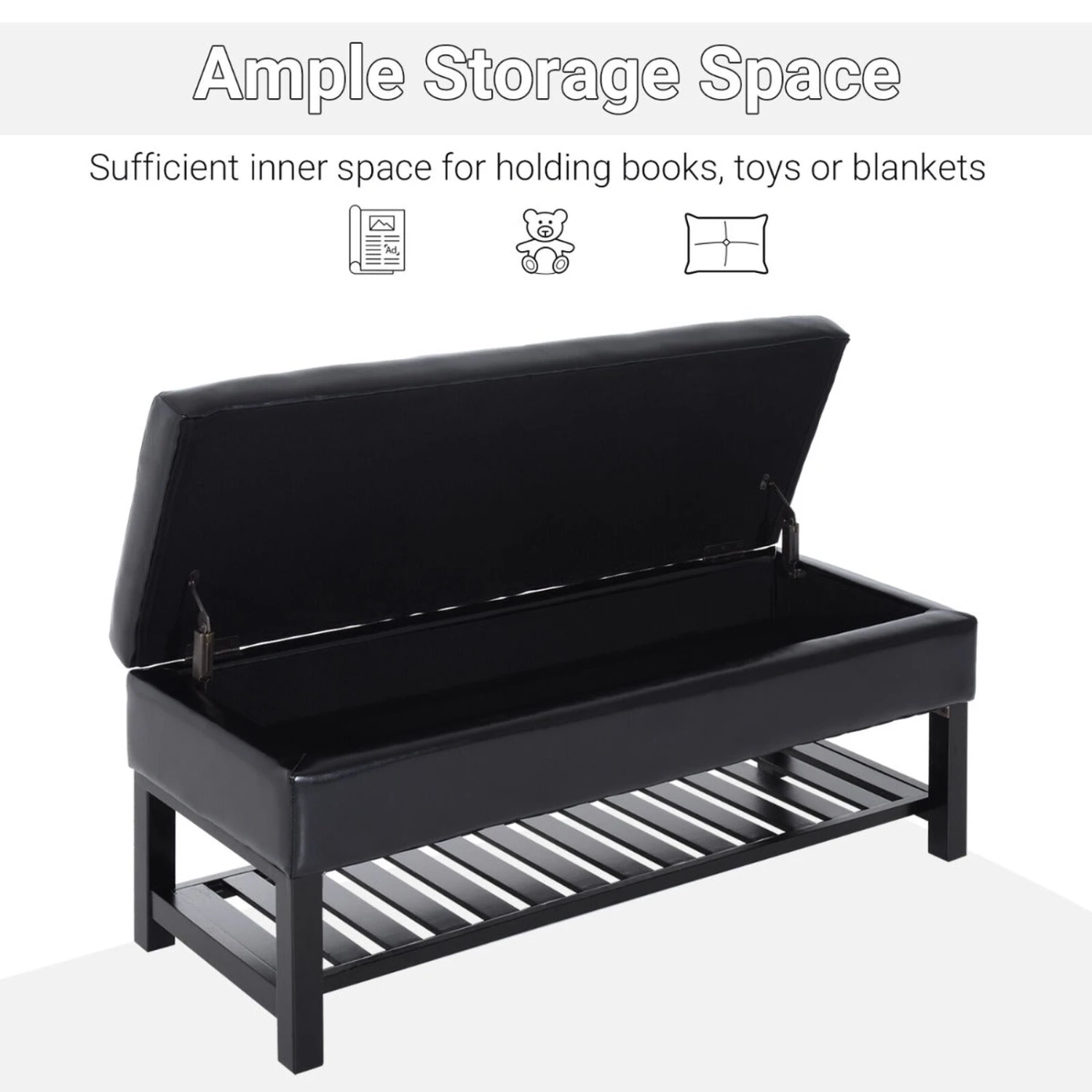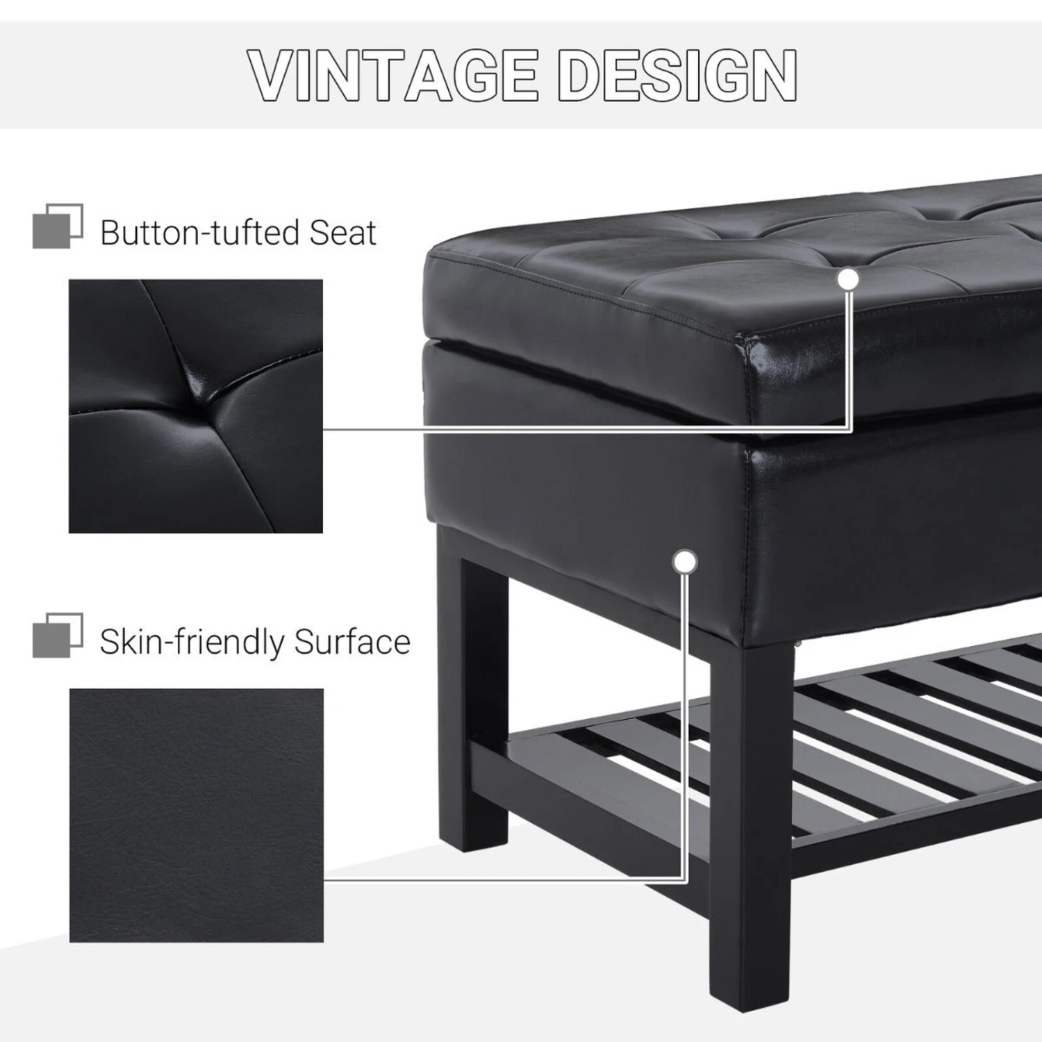 44″ Tufted Faux Leather Ottoman Storage Bench with Shoe Rack – Black | Aosom