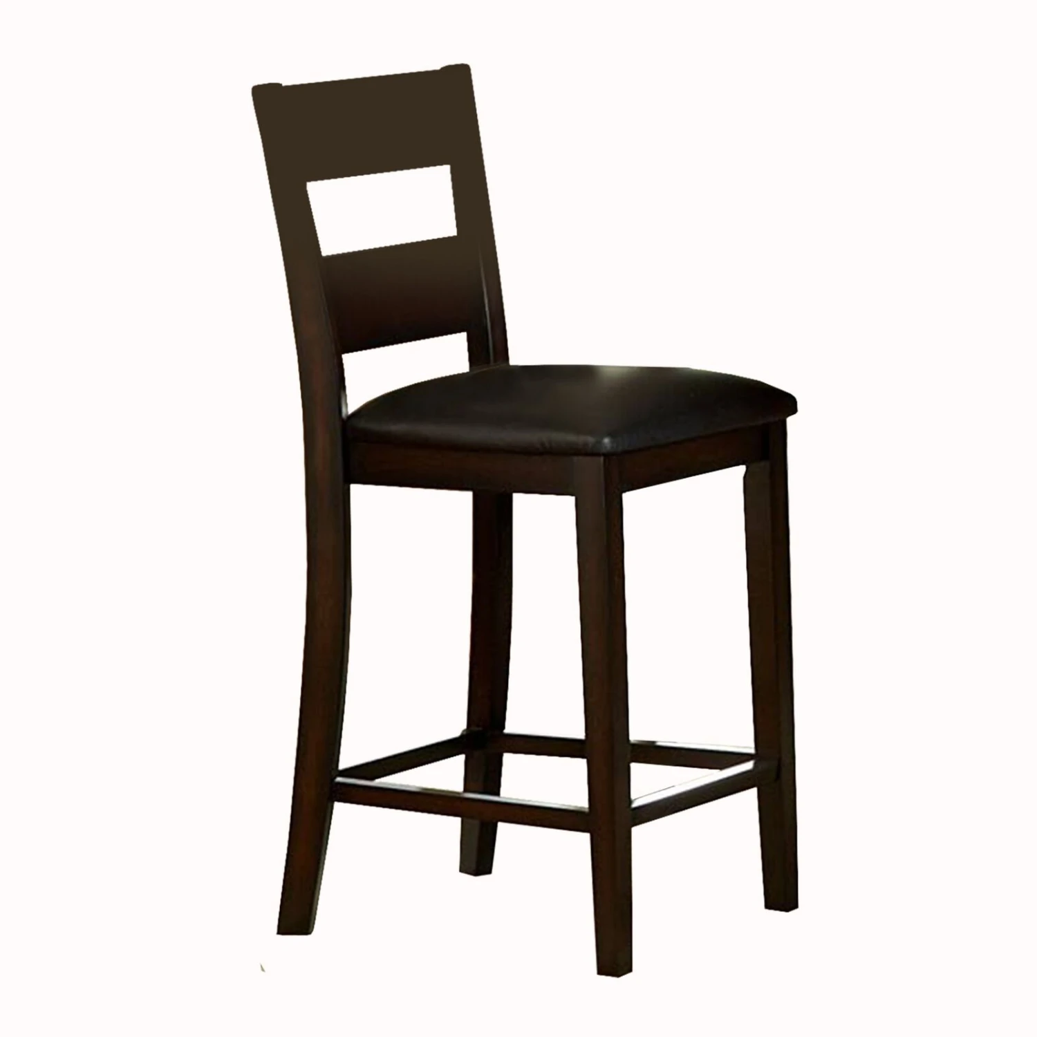 Bring in this striking, contemporary style 5 piece coUnter table and coUnter chair set for your compact bar setting or for your dining or kitchen area and stylize your interiors. Featured in a lovely espresso brown finish the set has four sleek legged chairs upholstered in padded leatherette and designer ladder back. Relish your favorite snacks, dinner and have drinks sitting on this stylish five piece coUnter table and coUnter chair set.