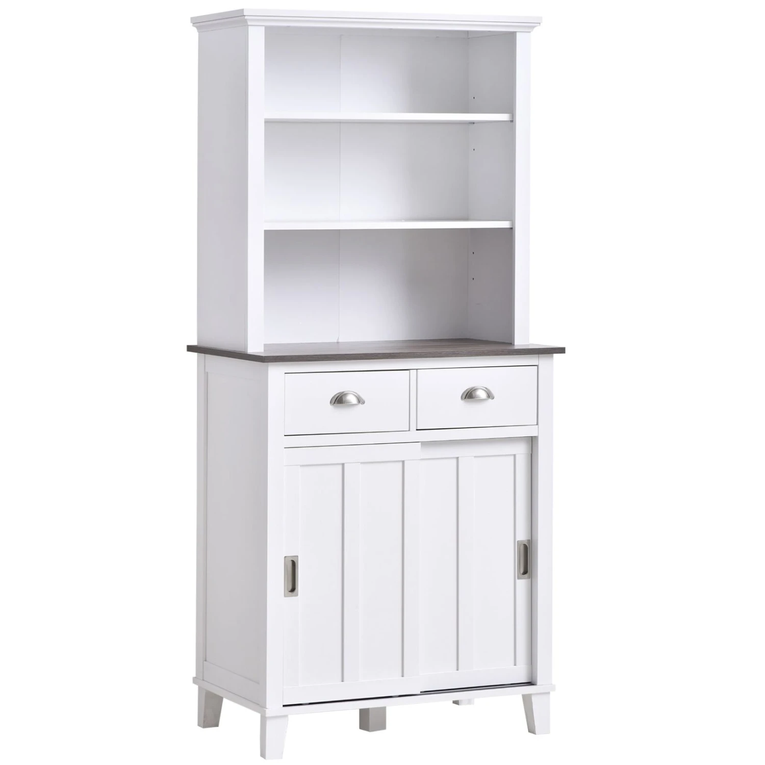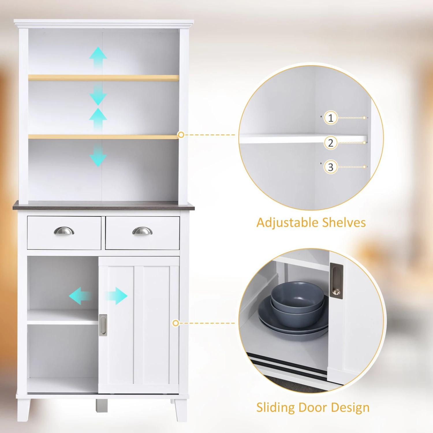 67″ Freestanding Buffet with Hutch, Kitchen Cupboard Storage Cabinet with Sliding Doors, Drawers and Open Shelves, Adjustable Shelving, White