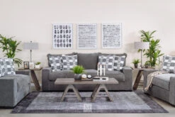 If style is the question, then this sectional is the answer. Sporting clean lines and sleek track arms, the decidedly contemporary profile is enhanced with plump cushioning and a chenille-feel upholstery, so pleasing to the touch. Sure to play well with so many color schemes, this sectional in richly neutral alloy includes a pair of understated floral pattern pillows for fashionably fresh appeal.