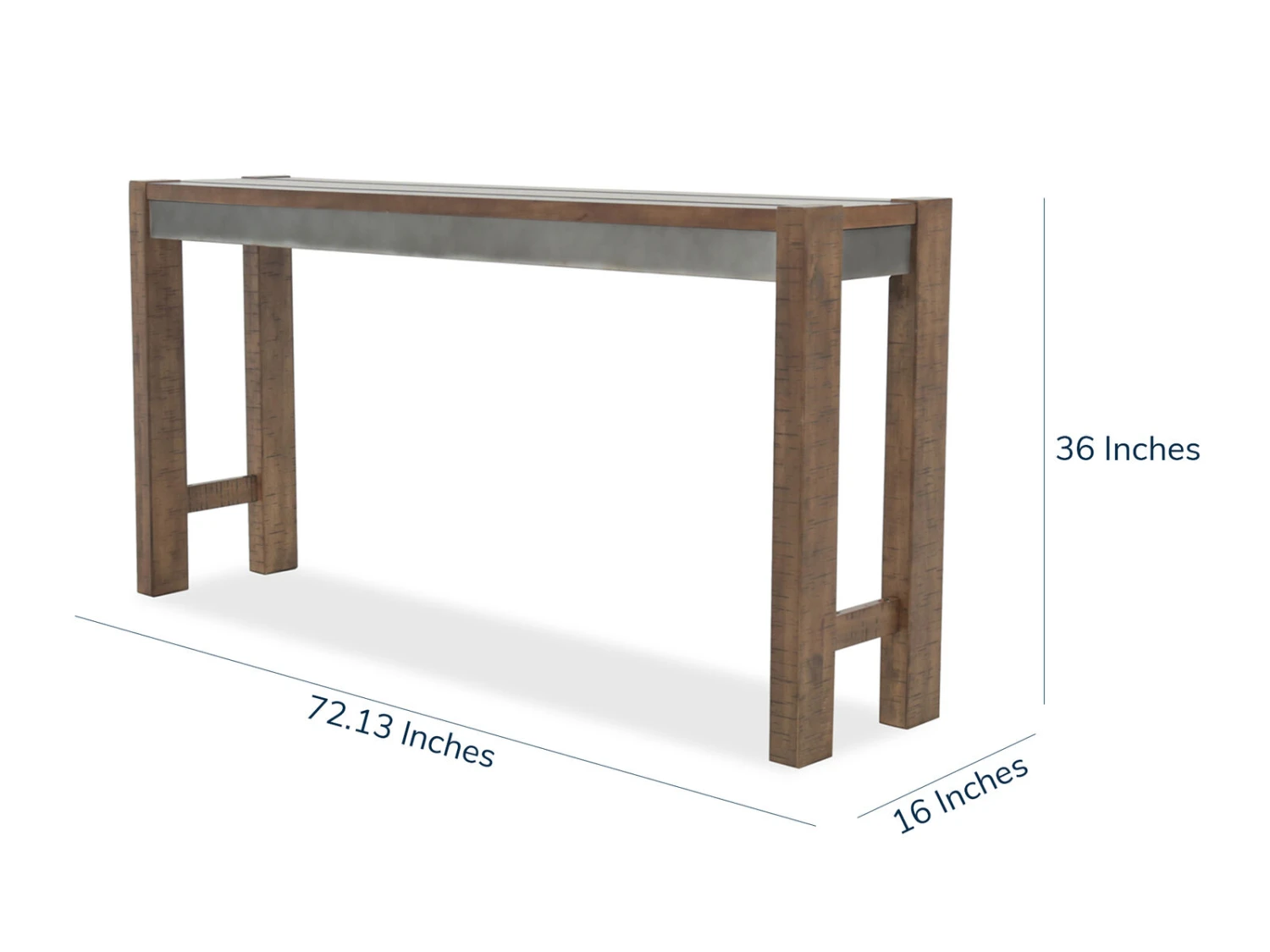 Make your home the hub for cool vibes with this long counter table. Two-tone finish scheme of distressed warm brown and aged gunmetal is full of urban industrial swagger. Long length makes it suitable for 3 people to sit. Add it behind your sofa with stools for a dapper eating or working space.