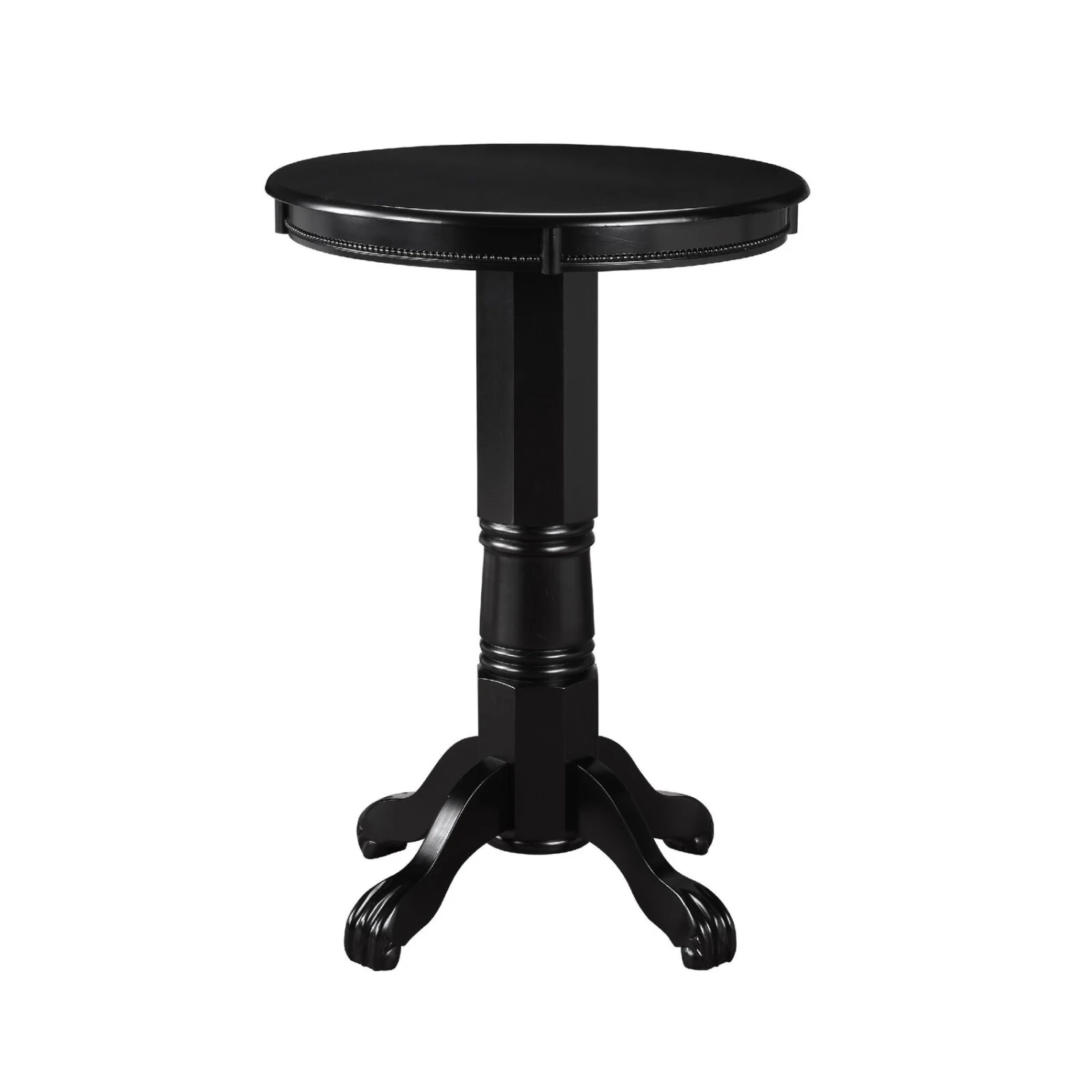 Ava 42 Inch Wood Pub Bar Table, Molded Trim, Carved Pedestal, Black