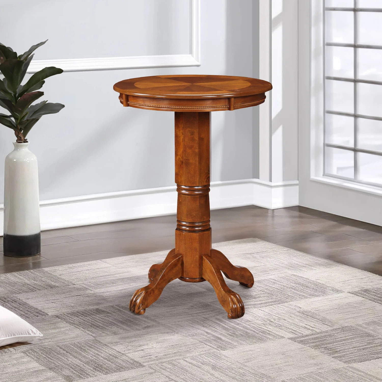 An elegant blend of fine craftsmanship and alluring details, this solid wood pub table from our Ava collection is perfect for a game room, bar or dining room. With a gorgeous sunburst table top and carved pedestal base with claw and ball foot design, this piece gives any space a feel of traditional elegance, giving them a bold, unique stage from which to draw the eye. Compatible with 29 inch height barstools, sold separately.