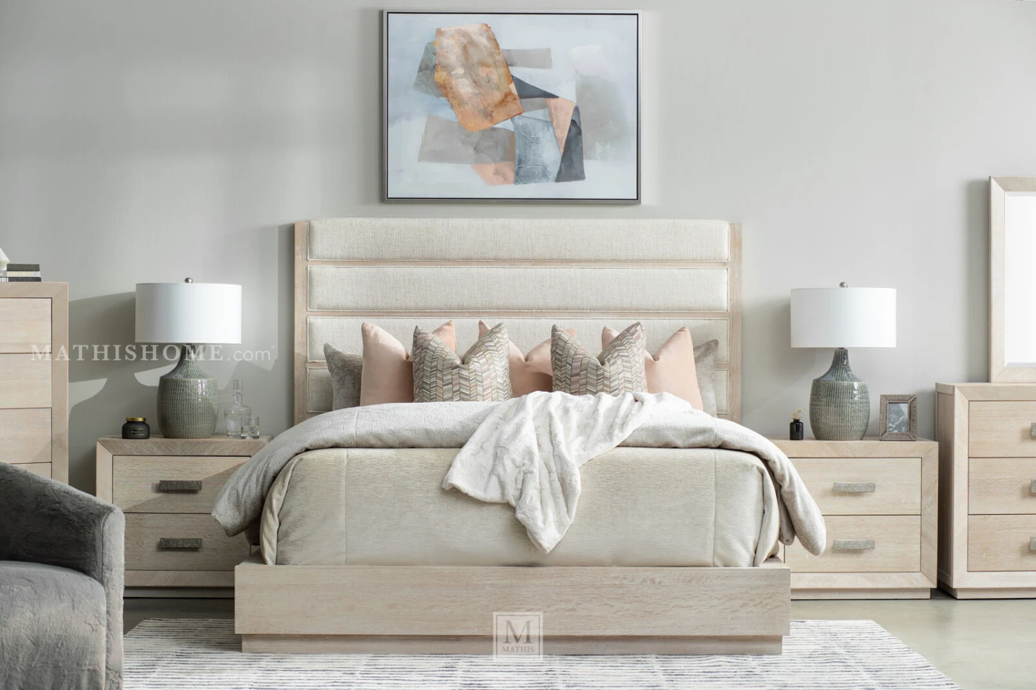 Indulge in supreme comfort and elevate your sleeping space to new heights with the Avery Panel Bed. Flaunting a contemporary silhouette with soft fabric upholstery in a neutral beige tone, this bed effortlessly adds a refined touch to your space. It comes with bolt-on rails and slats with support legs to ensure stability for a peaceful night’s sleep. The included floor protectors prevent any scratches or damage to your beautiful floors.