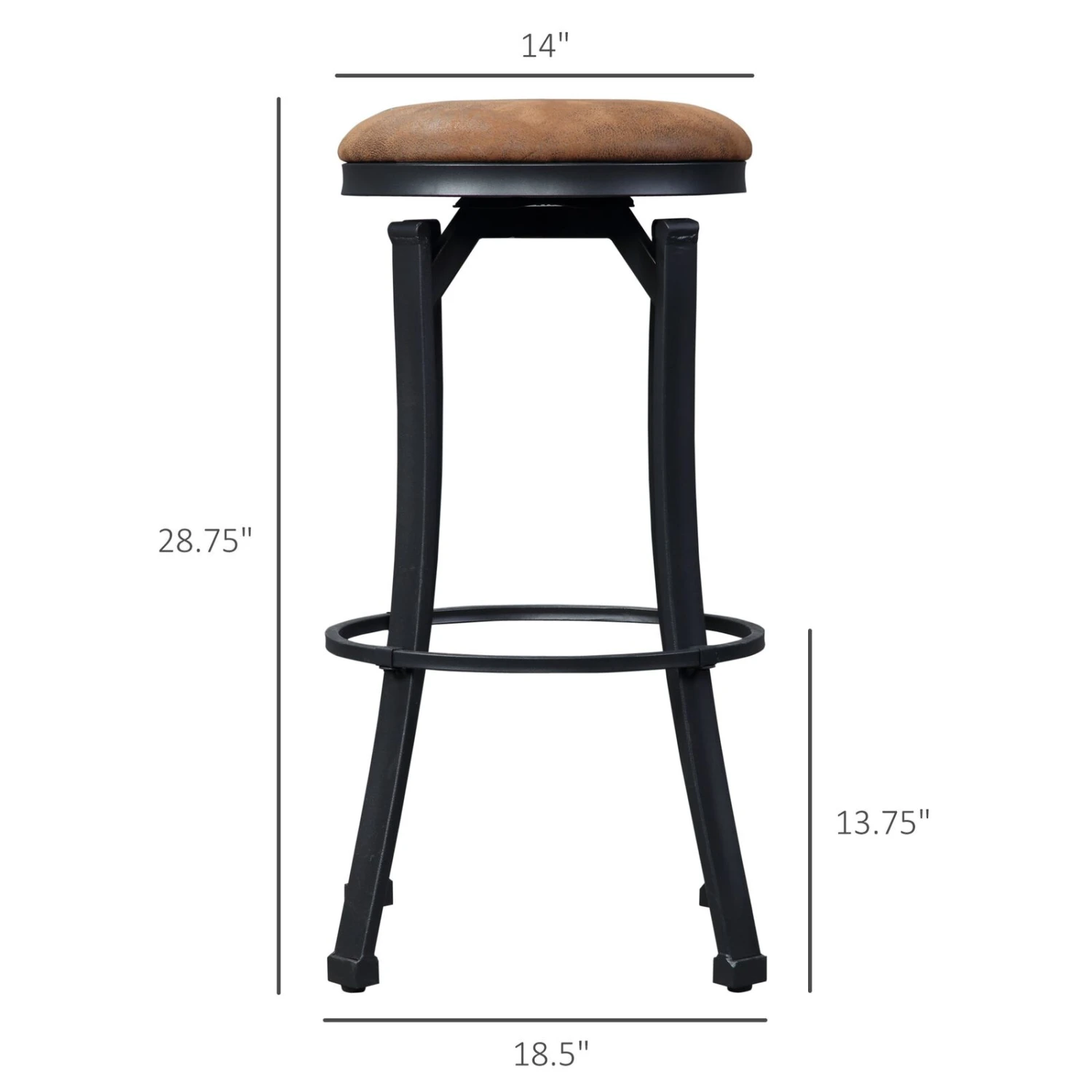 Bar Stools Set of 2, Vintage Barstools with Footrest, Microfiber Cloth Bar Chairs 29″ Seat Height with Powder-coated Steel Legs, Brown