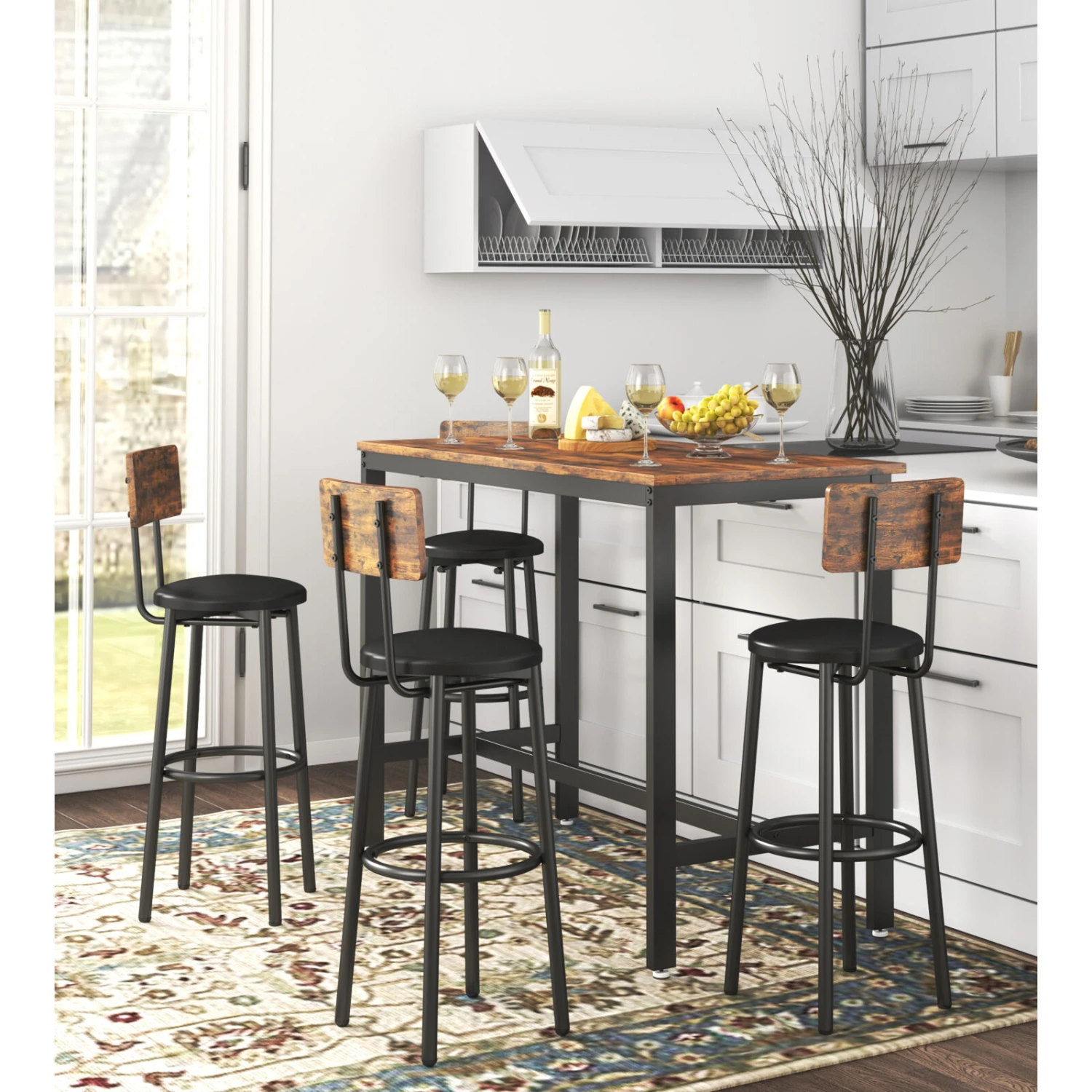Bar Table Set with 4 Bar stools PU Soft seat with backrest (Rustic Brown, 47.24’’w x 23.62’’d x 35.43’’h)