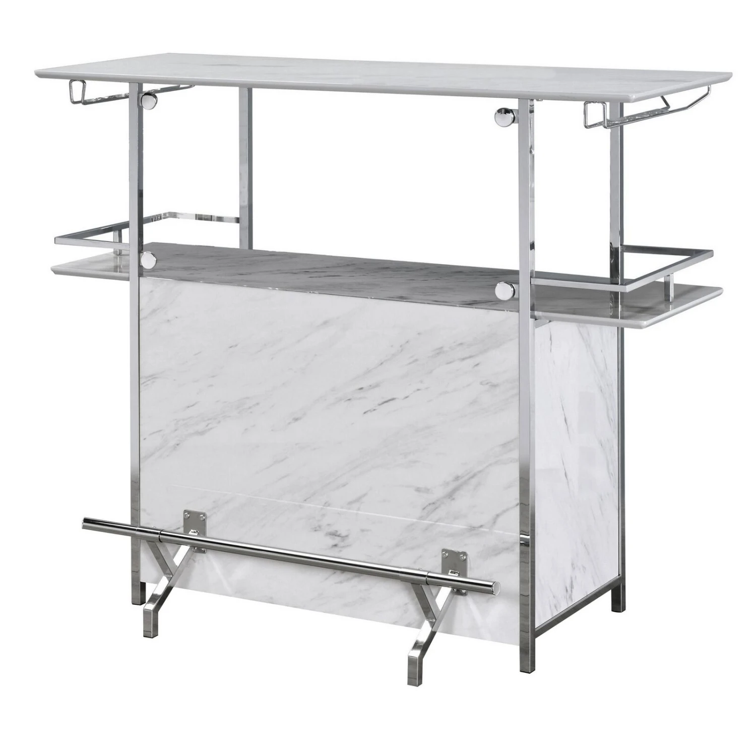 Bar Table with Faux Marble and Chrome Finish, White and Silver