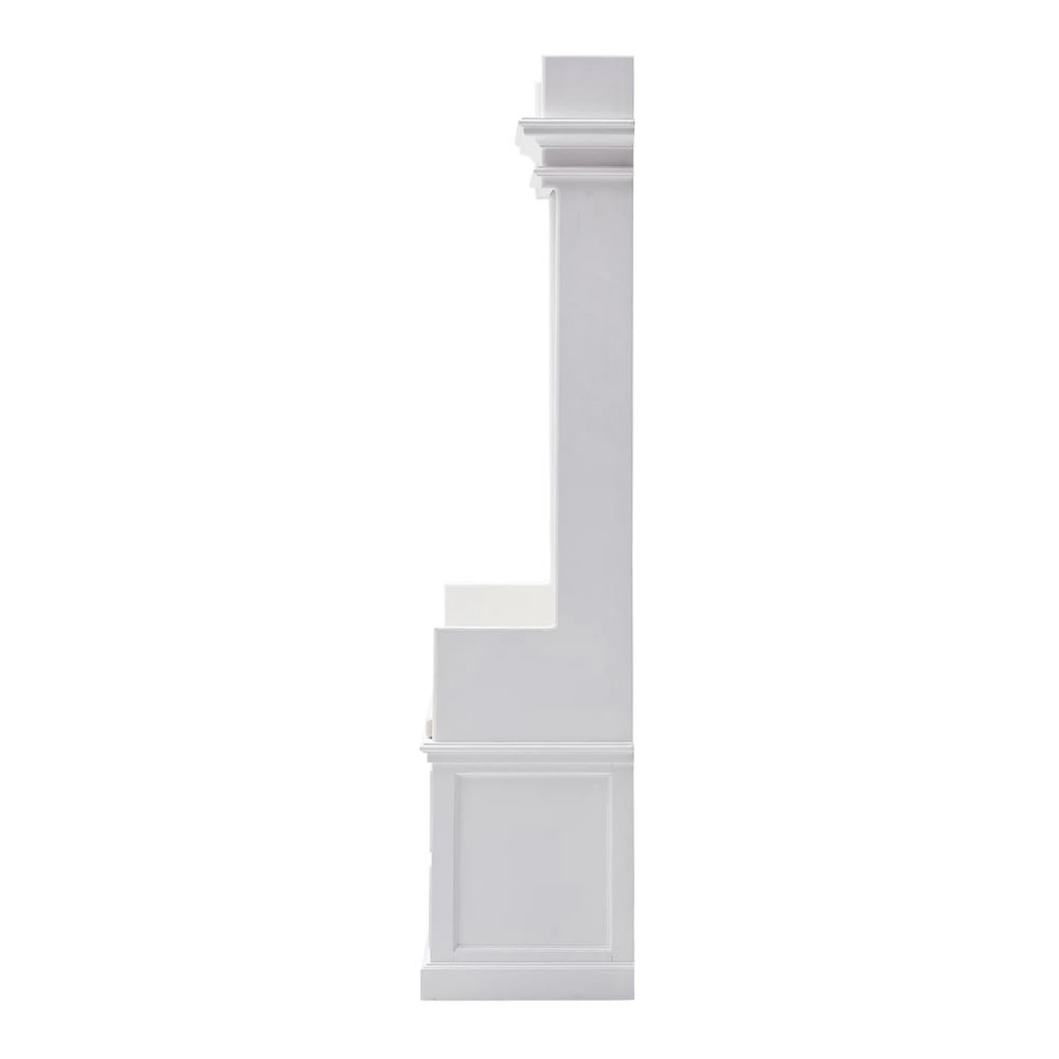 Keep your entryway organized with our Classic White Entryway Bench Coat Rack. This bench and coat rack combo is cleverly designed with a shelf above the flared crown molding, offering an unexpected display opportunity. The antique brass hooks can accommodate multiple guests’ coats or jackets with ease, while a seating area above two generous drawers offers a comfortable place to put on or take off shoes. The included seat cushion is made of durable 100% cotton with a removable cover for easy cleaning. Crafted with a kiln-dried solid mahogany frame, this entryway coat rack bench embraces the natural properties of the materials used and is hand-finished by skilled craftsmen. The classic white finish adds elegance and complements any home decor style.