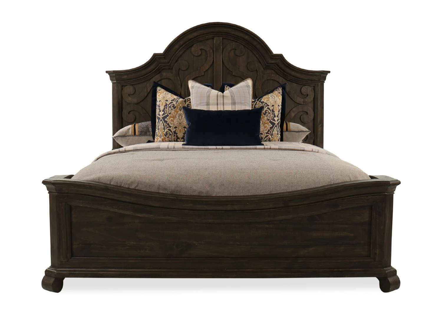 Create a bedroom space befitting the royals by bringing home the 72″ Contemporary Queen Panel Bed in Brown. This bed, constructed from wood veneers and solids with a brown finish, is anchored with a sinuous arched headboard decked with scroll detailing. It includes a curvy footboard, supportive slats and bolt-on rails along with cylindrical feet for maximum support.