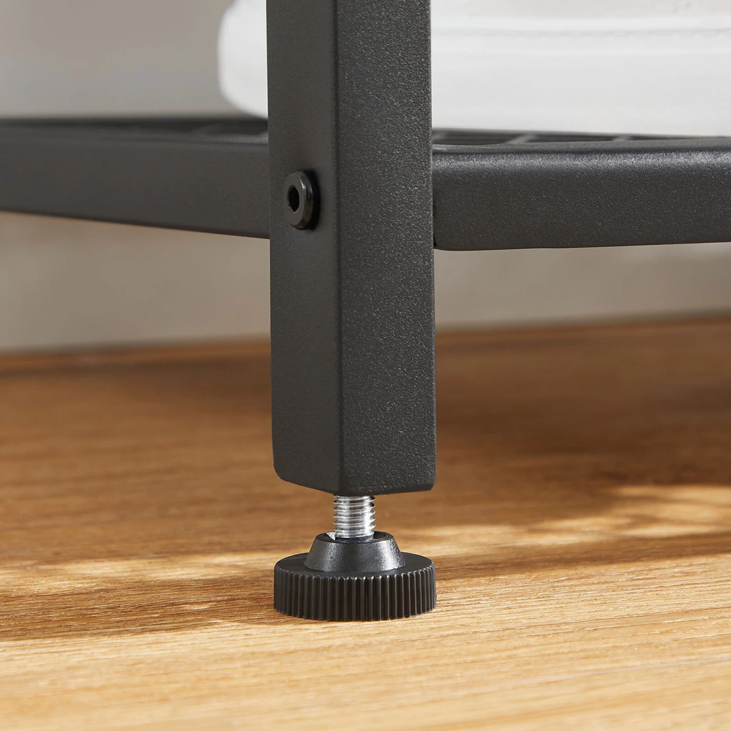 - HERE STANDS A FUNCTIONAL TALENT The coat rack not only has 2 rails with 12 differently arranged coat hooks, but the two sturdy mesh shelves also function as a shoe rack. In addition, the 30 mm thick seat offers sufficient stability to sit on while you put on your shoes
