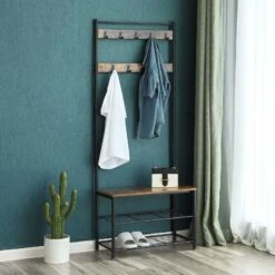 - WELCOMES YOU HOME Eliminate clutter in your hallway with this smart coat and shoe rack; featuring the perfect balance of clean lines, modern elegance and effortlessly rustic appeal