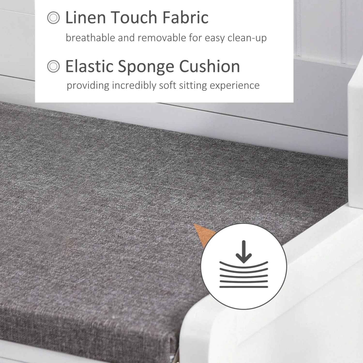 - – COMFORTABLE EXPERIENCE Thick sponge padding with linen touch fabric, soft and breathable, providing incredibly soft sitting experience. You can change your shoes while sitting and put your shoes on bottom shelves