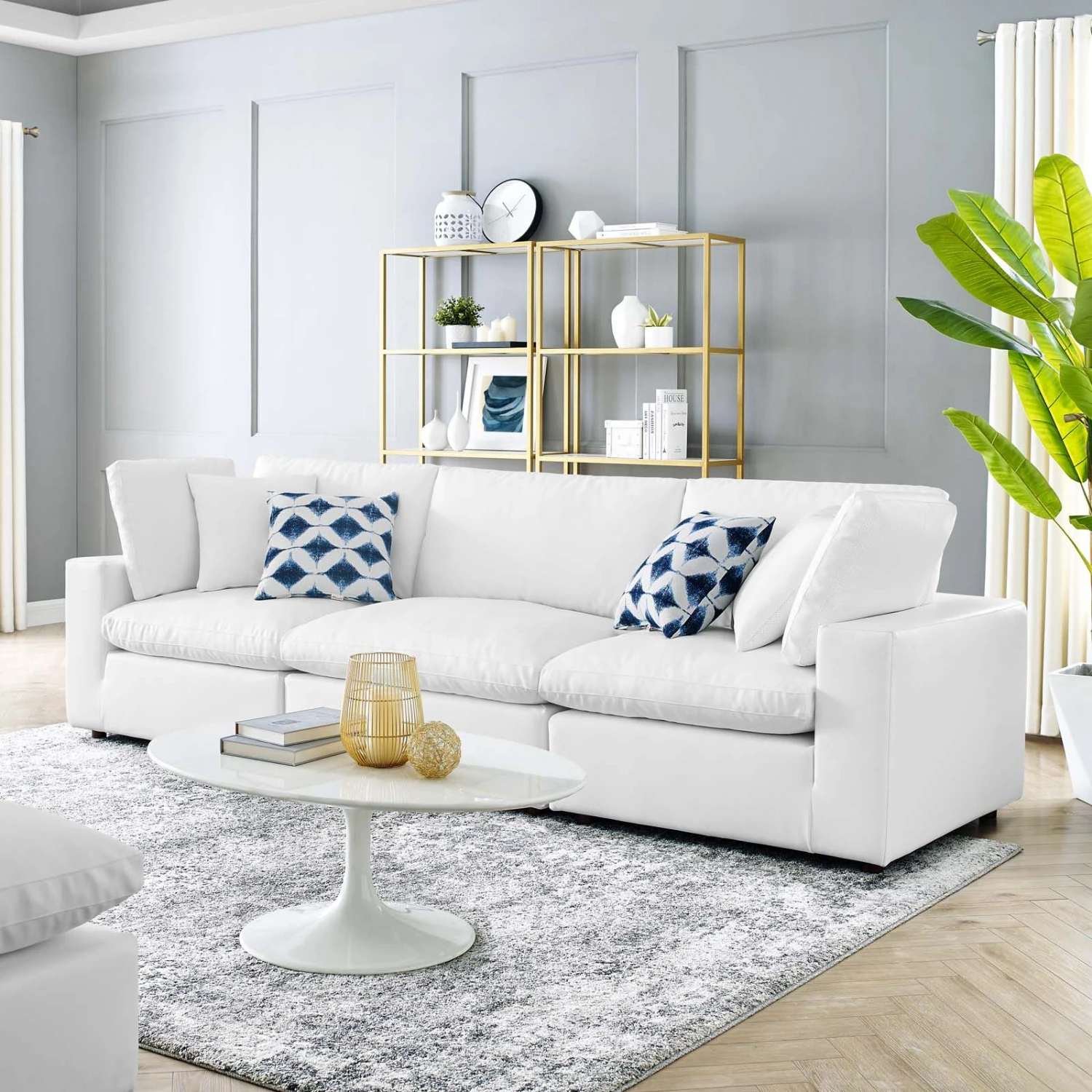 Commix Down Filled Overstuffed Vegan Leather 3-Seater Sofa