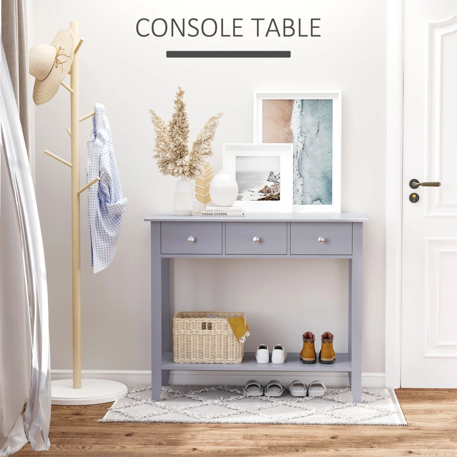 Console Table Industrial Desk with Drawer Bottom Shelf & Large Tabletop for Pictures Great for the Entryway Grey