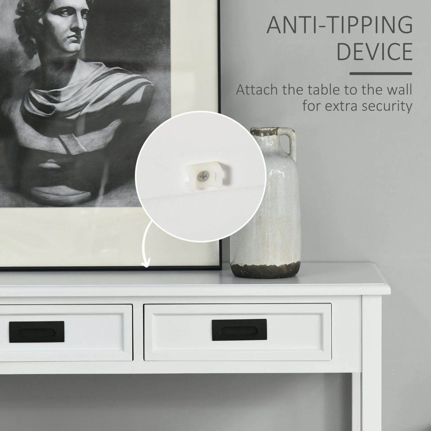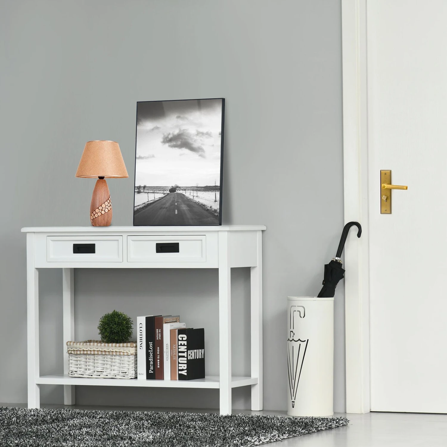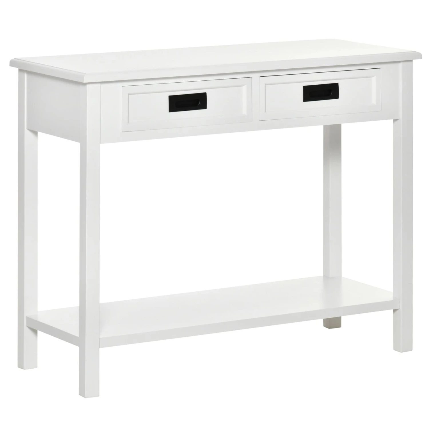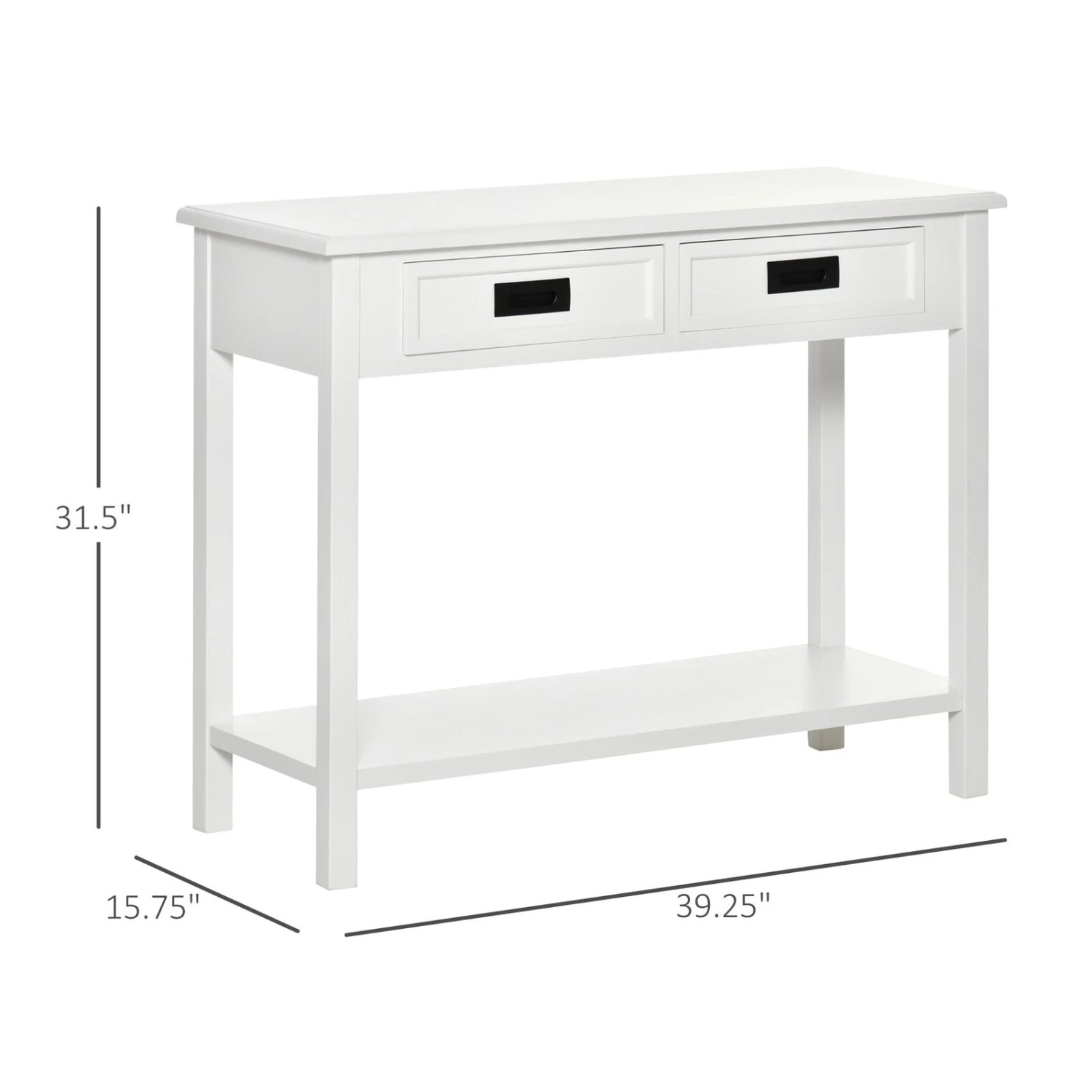 Console Table with 2 Storage Drawers and Open Shelf, Modern Sofa Table for Hallway, Living Room, or Bedroom, White