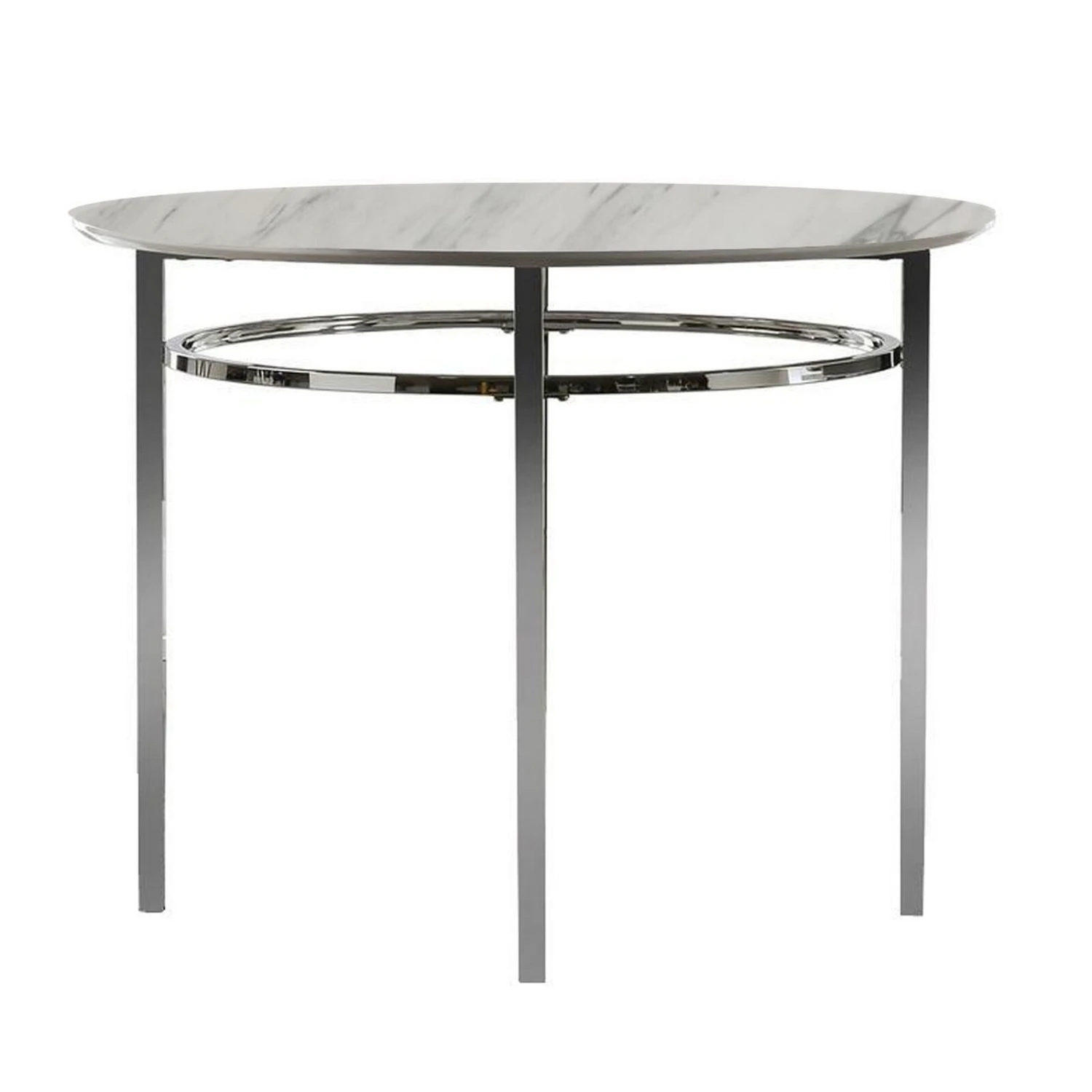 Offer an inviting element to your home decor with this charming Dining Table. It features a round silhouette with a white faux marble tabletop, supported on chrome finish metal frame support for great sturdiness and durability. Utterly striking in style and graceful in presentation, this table lends marvelous allure wherever it is placed.