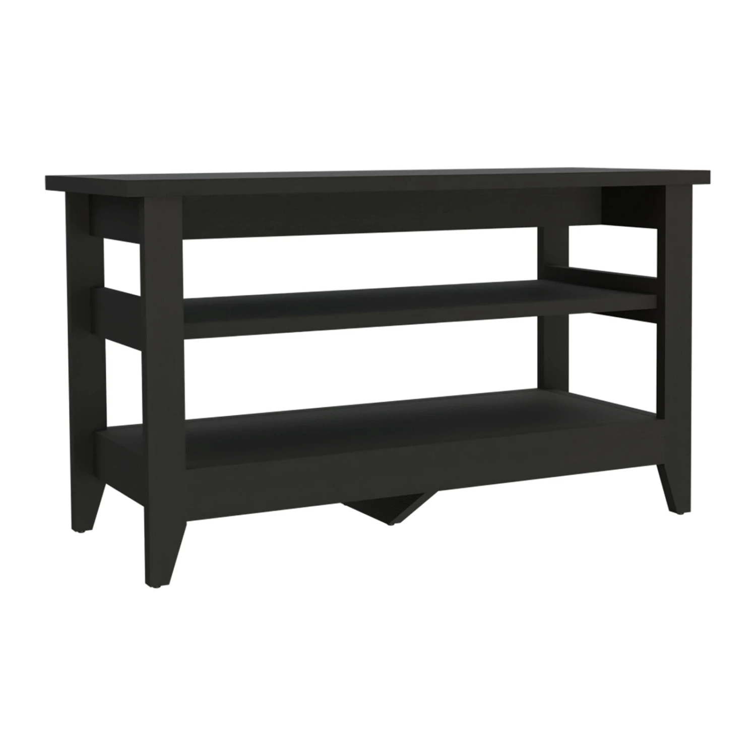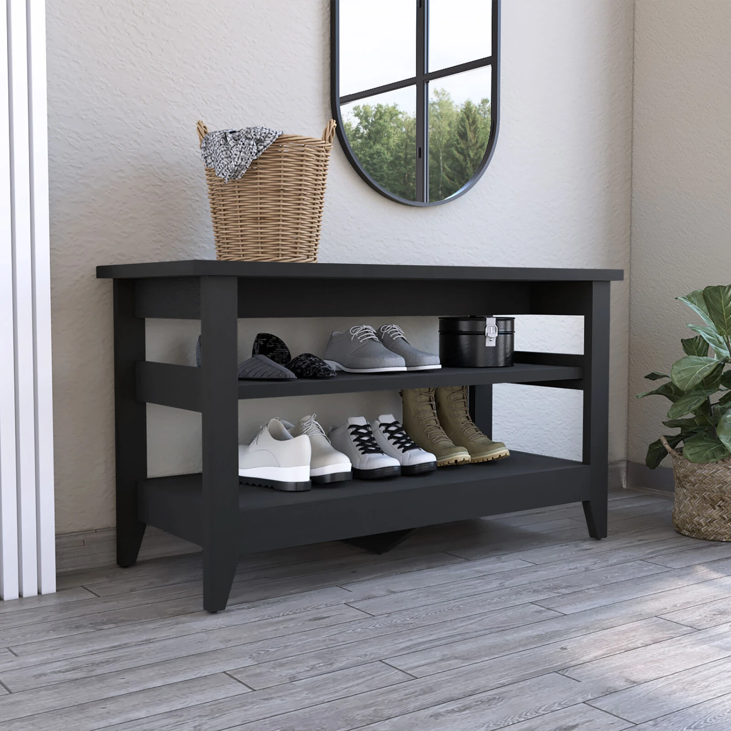 DEPOT E-SHOP Mason Storage Bench, Two Open Shelves, Black