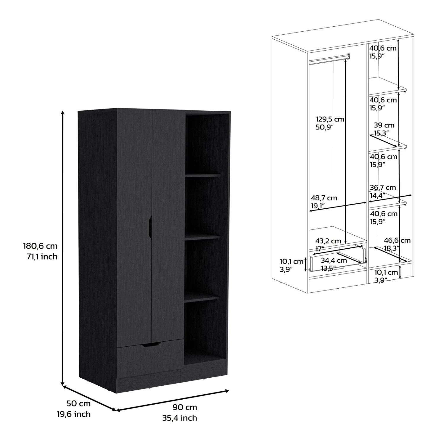 DEPOT E-SHOP Toccoa Armoire with 1-Drawer and 4-Tier Open Shelves