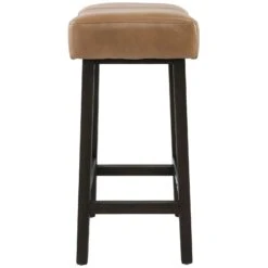 26 Inch Wooden Frame Leatherette Backless Counterstool, Beige-Benzara