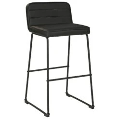 40 Inch Channel Stitched Leatherette Barstool With Sled Base,Set Of 2,Black-Benzara
