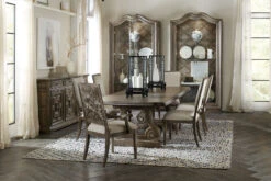 Wooden Round Dining Table With Heavy Pedestal Feet, Weathered Gray-Benzara