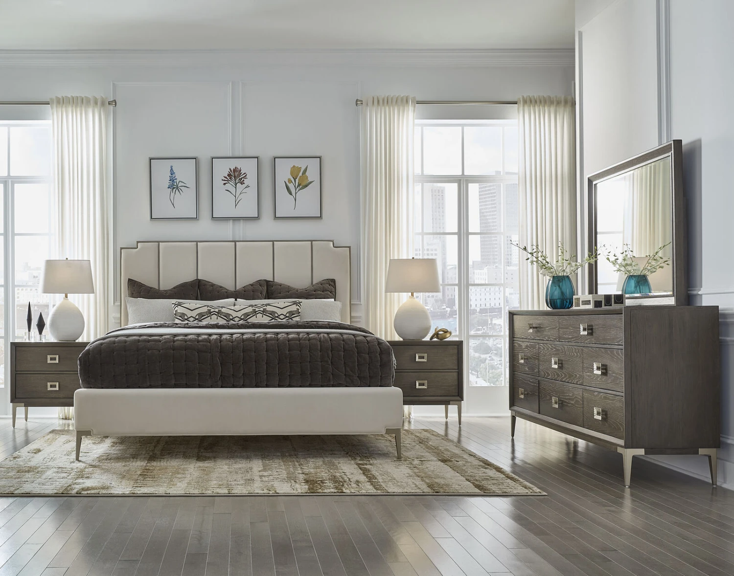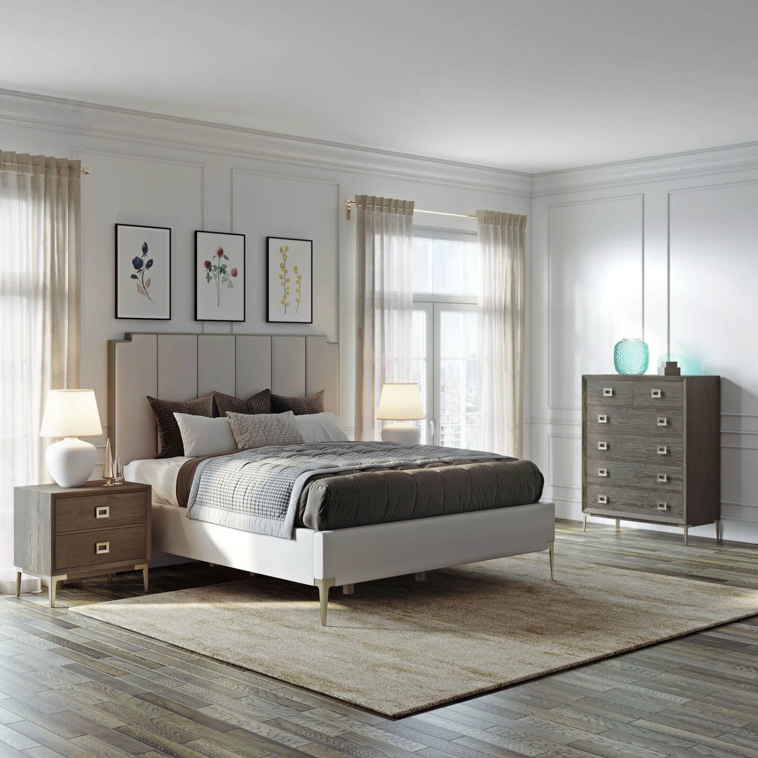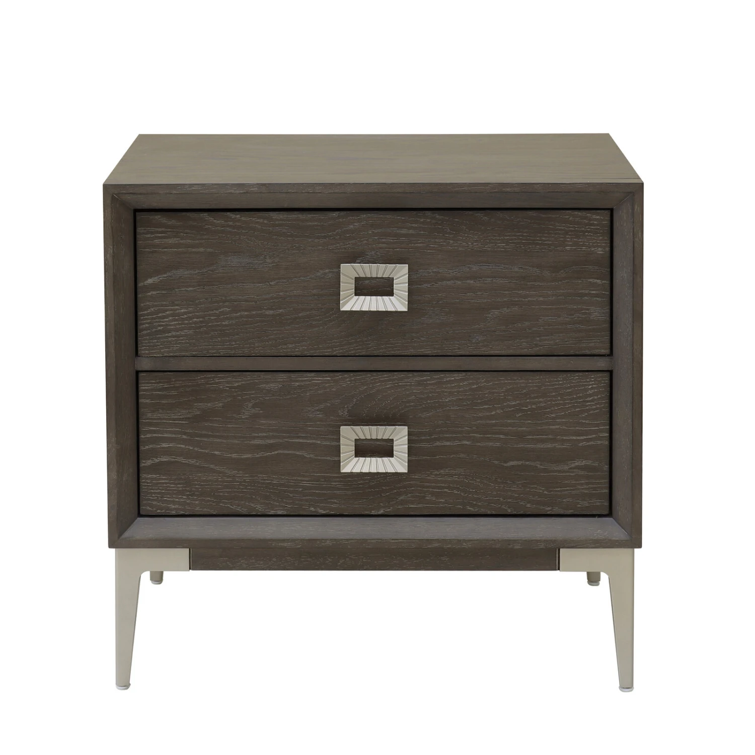 The Boulevard Two Drawer Nightstand is a staple piece in the Boulevard Bedroom collection, offering a surplus of drawer storage with a sleek, transitional look. A host of features will both surprise and delight a smooth, soft closing top drawer, hidden USB charging ports on the back, gorgeous custom hardware in soft champagne, fun open square drawer pulls, and metal bracket modified stiletto feet for an extra infusion of style. Mix and match the Boulevard Nightstand with other pieces in the Boulevard Collection for coordinating bedroom styling.