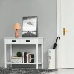 Stub 47 Inch Sofa Console Table, Glossy White Wood, Glass Panels, 1 Drawer-Benzara