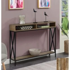 HomeRoots Rectangular Grey With Black Metal Hall Console Accent Table