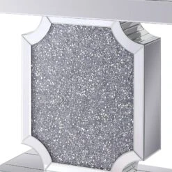 Wood And Mirror Console Table With Faux Crystal Accented Sculptural Pedestal Base, Clear-Benzara