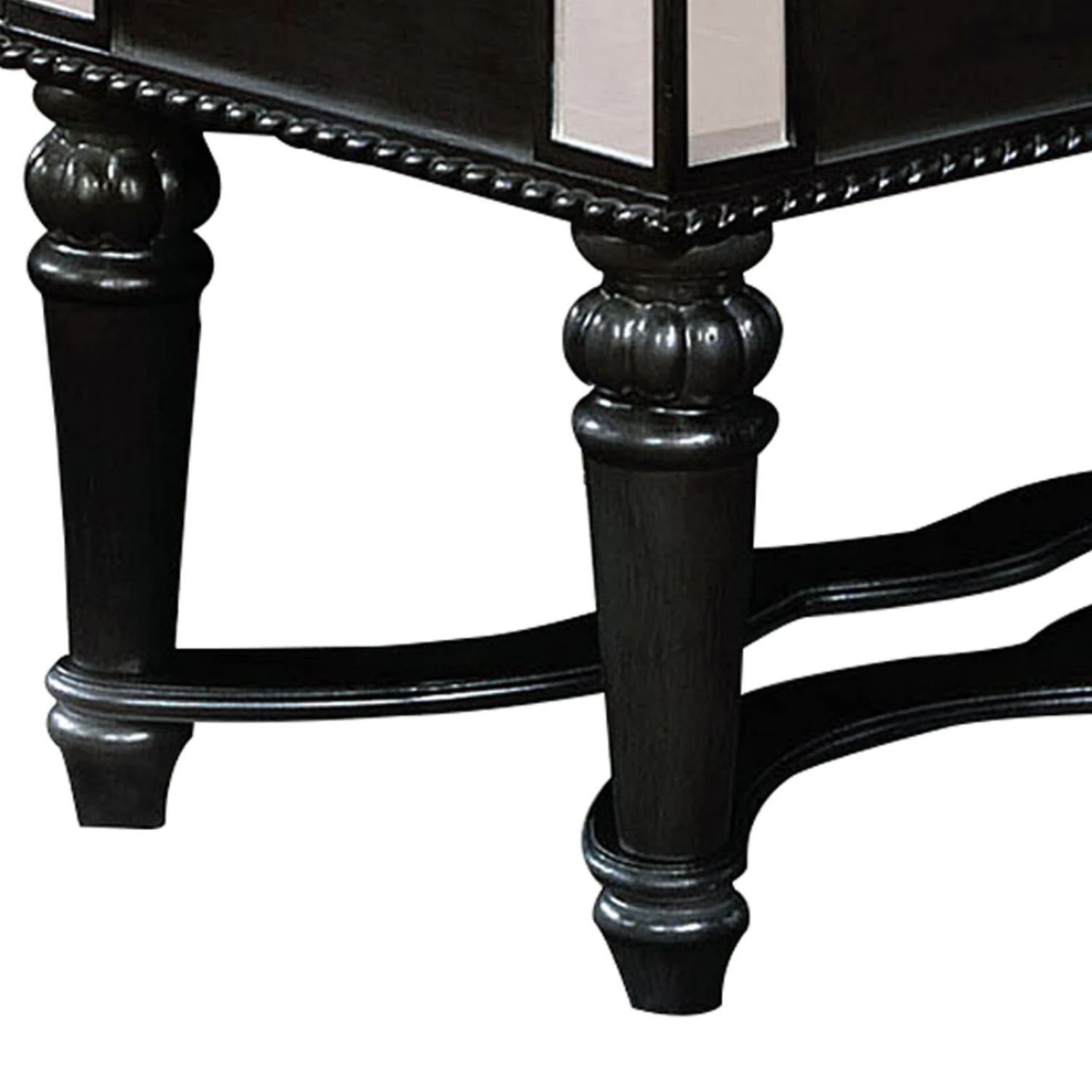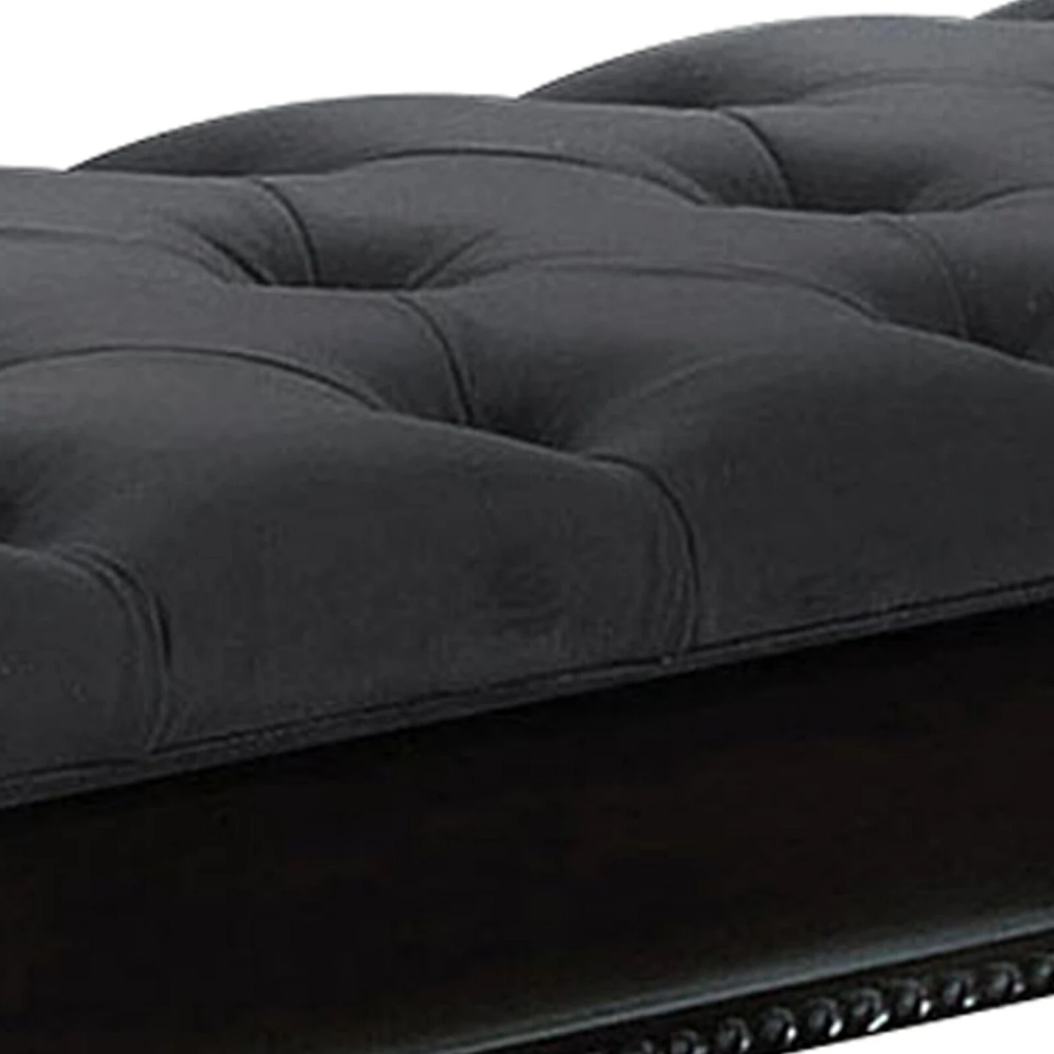 Fabric Padded Bench with Deep Button Tufting and Turned Legs, Black
