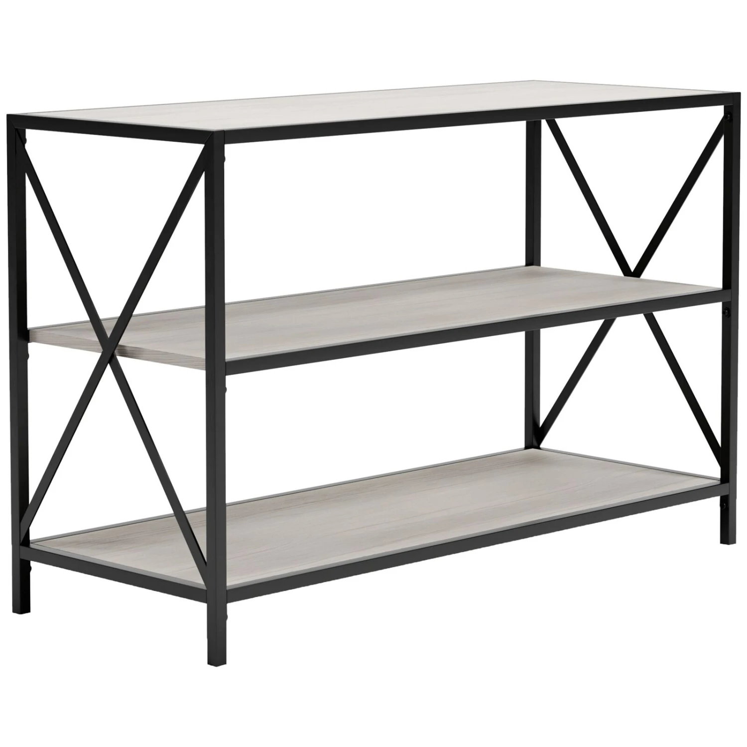 Made with a striking sense of minimalism and a hint of contemporary class, our gorgeous industrial bookcase is perfect for bibliophiles and lovers of literature alike. The whitewashed wood gives off a sense of crisp sophistication while the crossed accents reinforce its durable and visually striking metal construction. Check out our Gem collection for matching items.