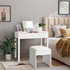 — High Capacity The table features two drawer to store your belongings and keeps your table top clutter-free. A handle is installed on the drawer to facilitate the opening and closing of the drawer.