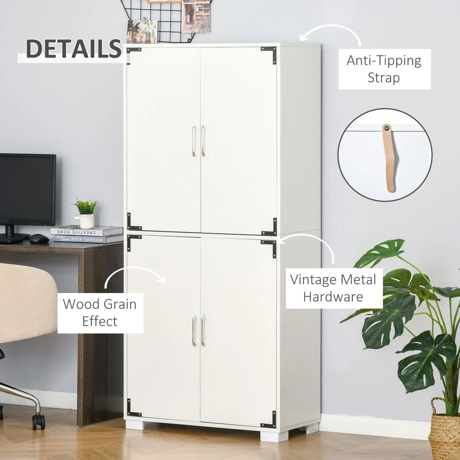 - – Safety First This food pantry cabinet features an anti-tipping strap and can be fixed to the wall to prevent it from tipping over.
