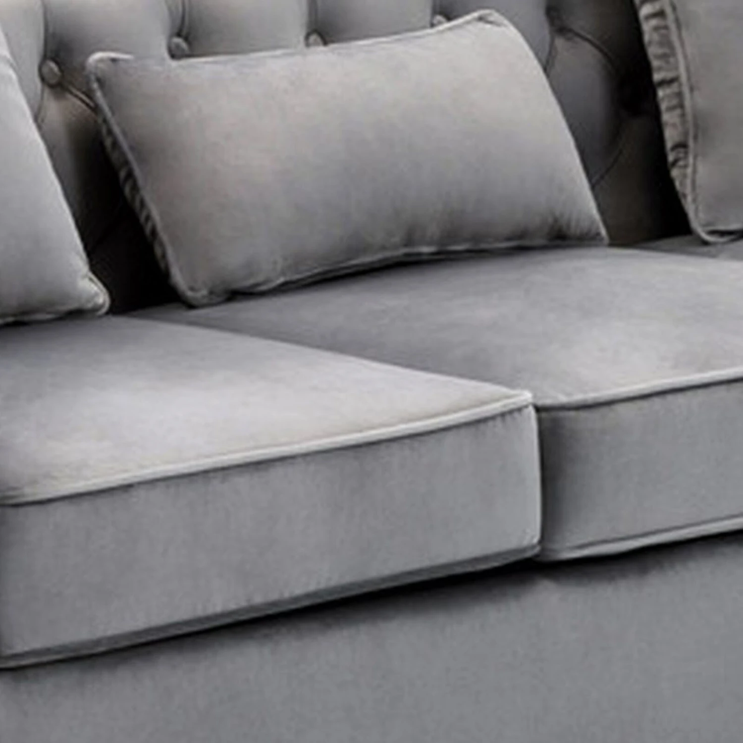 - Soft, smooth gray velvet fabric upholstery