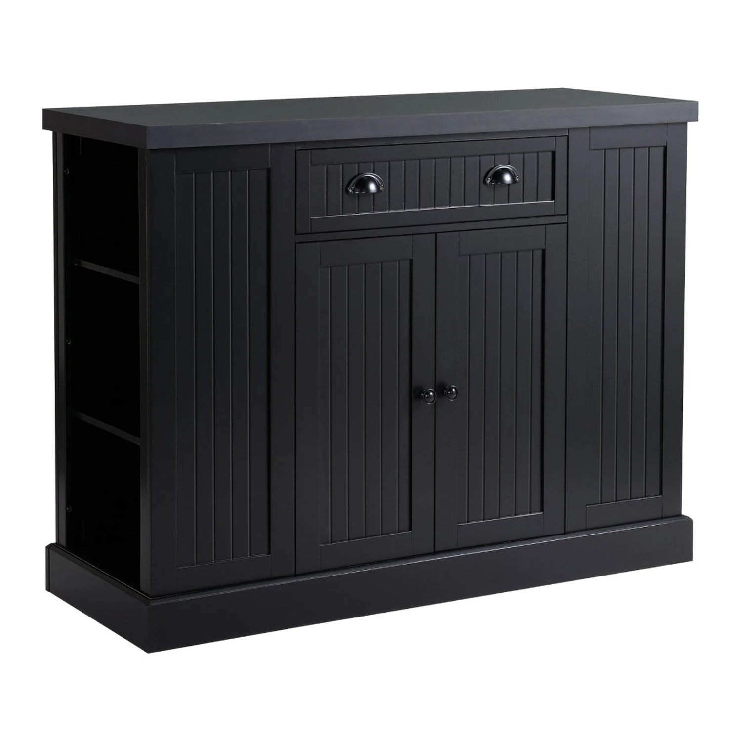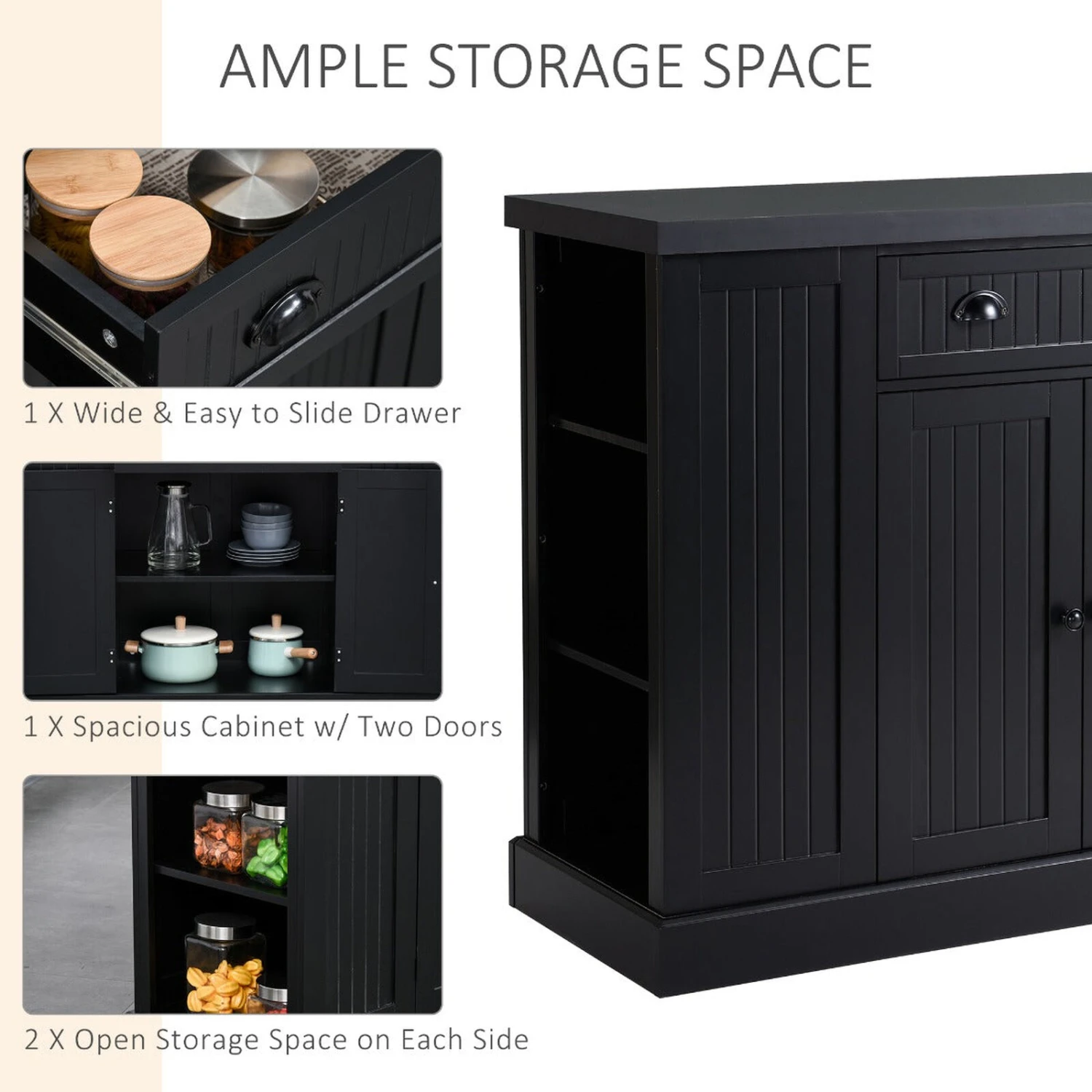 - – MULTIPLE STORAGE OPTIONS: A large drawer offers storage for utensils, while the two cabinet doors house interior shelves for larger kitchen necessities. Open storage areas on the sides with adjustable design provide additional space.
