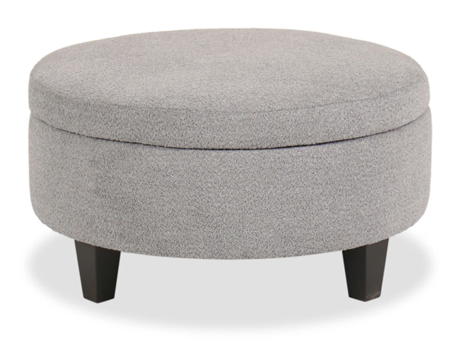 Make a chic and practical addition to your living space with the Medium Round Storage Ottoman. Upholstered in a sophisticated gray fabric, this ottoman effortlessly complements a range of décor styles. The tapered wooden legs add a touch of elegance and stability, while the transitional design ensures it fits seamlessly in both modern and classic settings. With hidden storage beneath its cushioned top, this ottoman provides a convenient solution for tidying up your space.