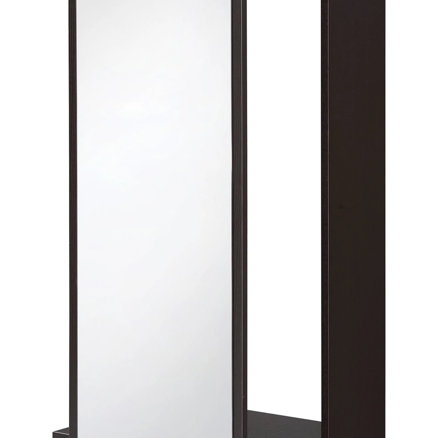 Organize and stylize your hallway with the inclusion of this Hall Tree. Featuring a sturdy construction of melamine veneer and particle board, this Hall Tree comes with clothing hanging space above the open bottom shelf, while the long mirror on the front and a side hook add to the versatility of this Hall Tree.