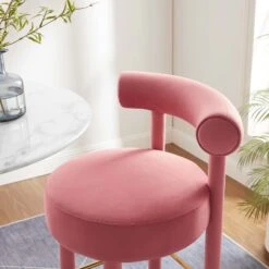Gather family and friends for good food and conversation around the Verne Dining Table. Bringing modern influence and mid-century inspiration to your dining space, this pedestal table reflects an organic shape. Perfect for entertaining or everyday dining, this dining table rests on a polished gold metal pedestal base and features a 35″ tabletop crafted with MDF and an easy-to-clean walnut grain veneer. Non-marking ring to protect flooring. Assembly required.