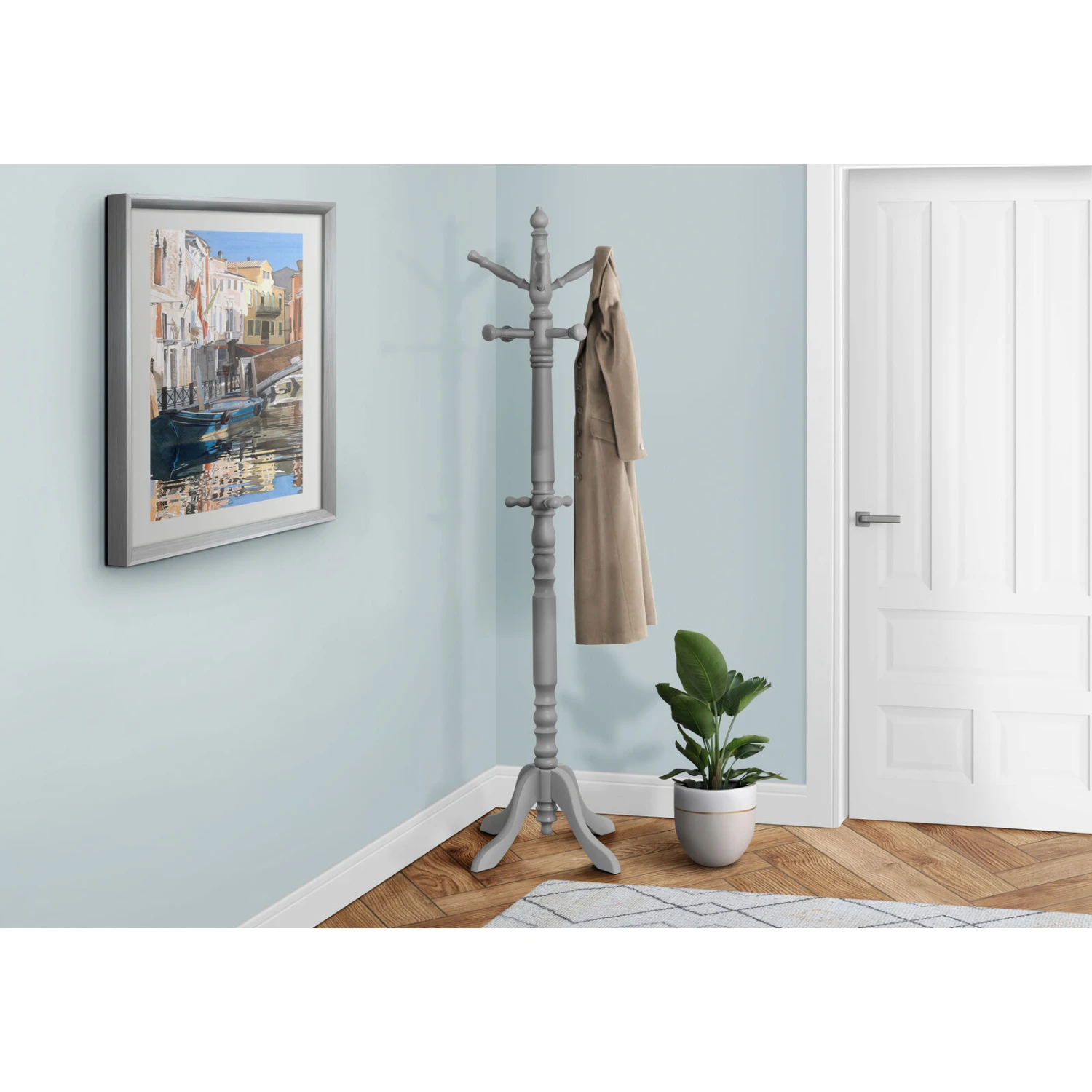 Monarch Specialties I 3179 Coat Rack, Hall Tree, Free Standing, 11 Hooks, Entryway, 73″H, Bedroom, Wood, Grey, Contemporary, Modern