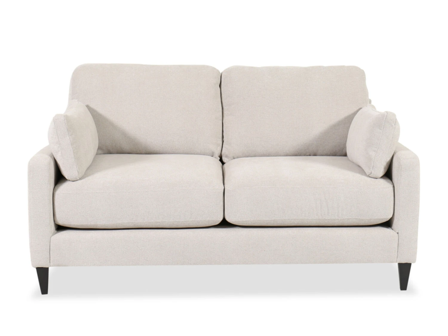 Set up the ideal spot for comfy hangouts and idyllic relaxation in your home with the Petra Apartment Sofa. Thick cushions, padded throw pillows, and straight arms provide soft comfort and firm support as you settle down. Engage in sparkling conversations, entertain guests, or simply curl up with your favorite book on this sofa. Beige finish of the upholstery and dark finish of the exposed feet make a pleasant contrast.