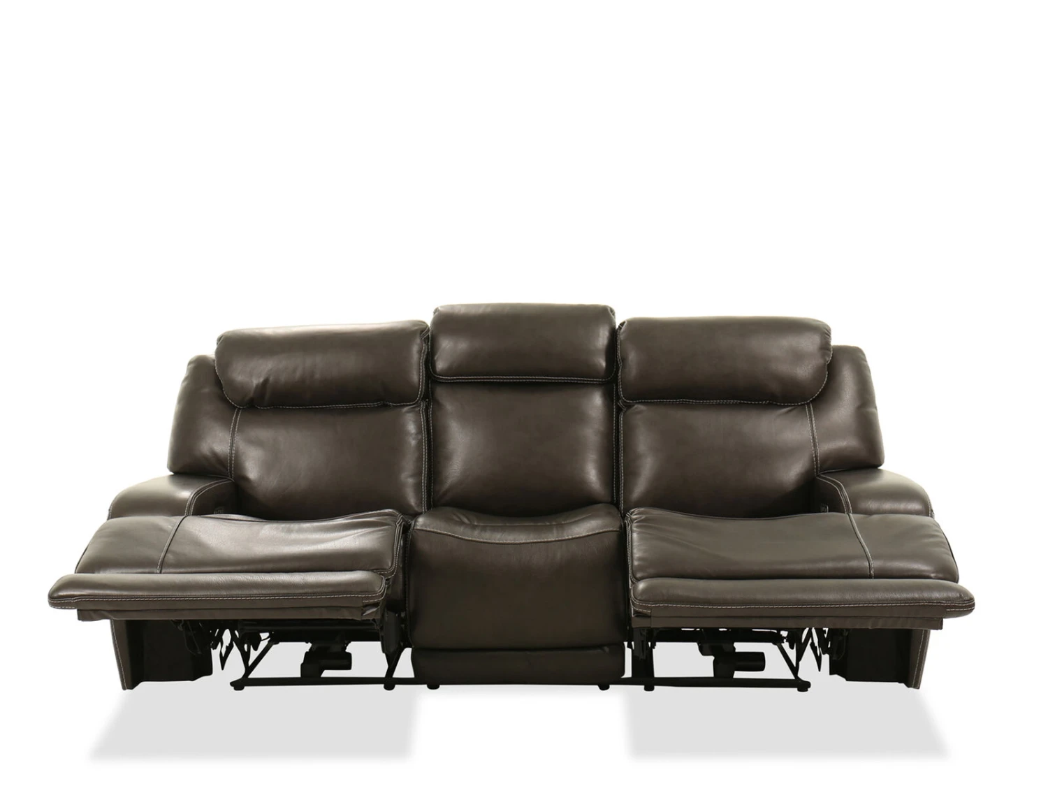 Take living room lounging to a whole new level with this Pewter Power Headrest Sofa. Its wide silhouette is draped in the finest of leather with a soothing gray tone that transforms the ambiance of your living space. The plump cushioning on seats, backs, arms, and leg rests along with the convenient headrests promise the ultimate in comfort and support. Button-operated power reclining mechanism makes switching between angles easy breezy.