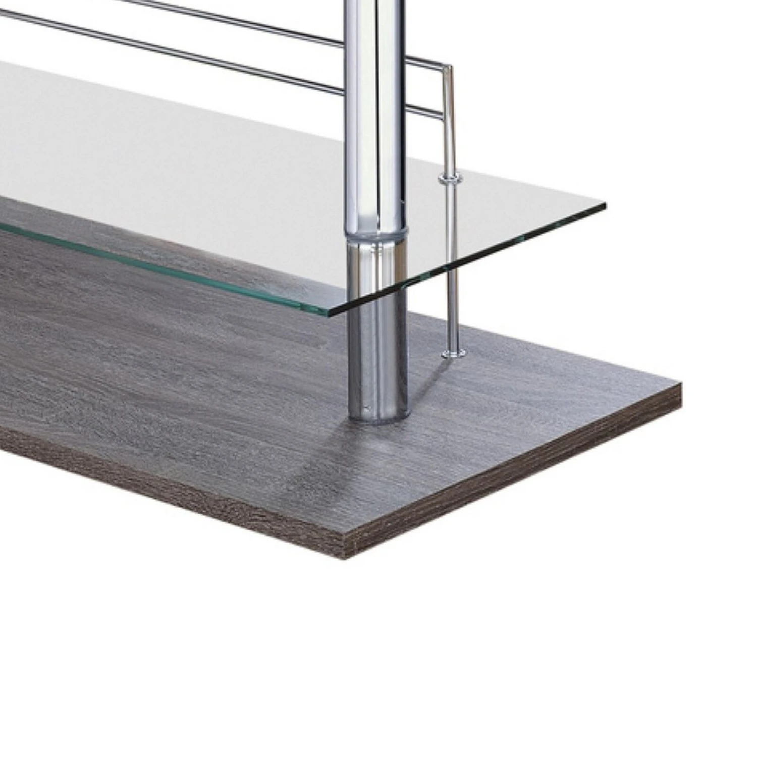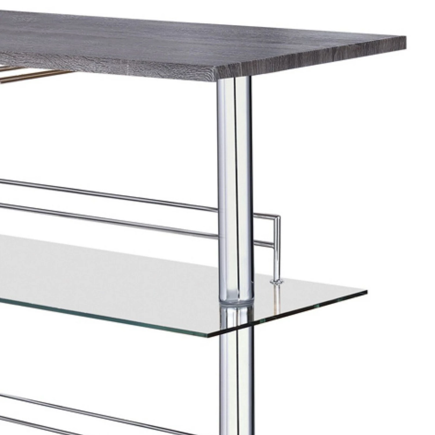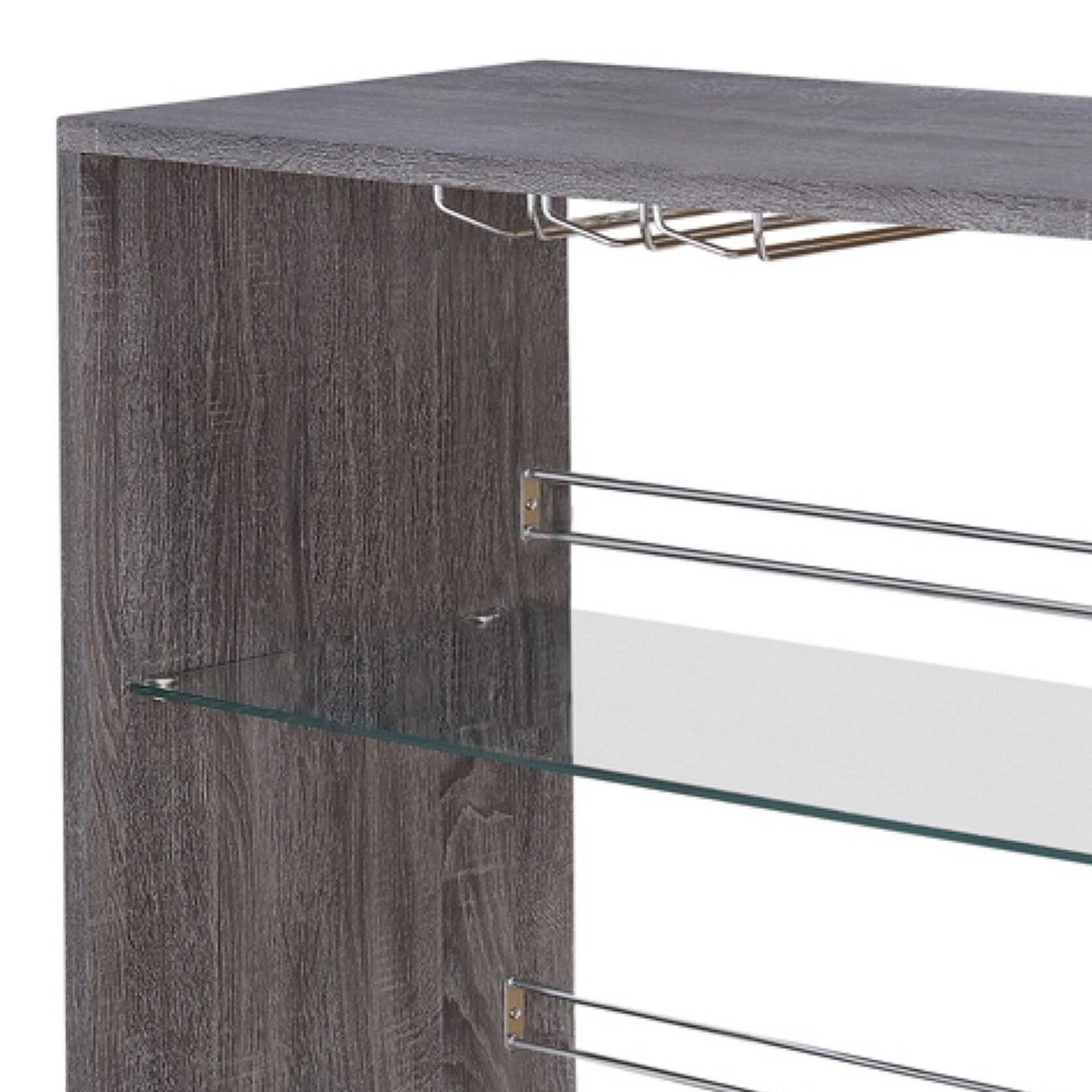 Radiant Rectangular Bar Table with 2 Shelves and Wine Holder, Gray-Benzara