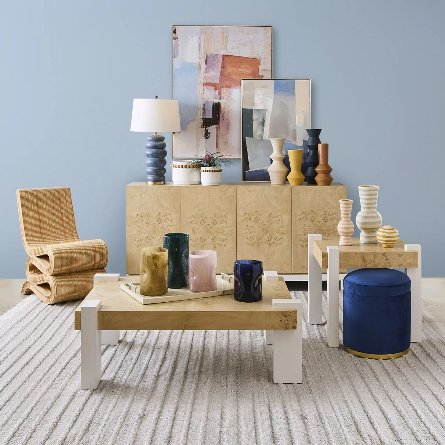 The Raina Storage Ottoman has a drum shape and a brass metal band around its base. A small ridge at the top of the velvet upholstery reveals an inner storage area. Every room benefits from a chic velvet storage piece like this ottoman, which doubles as a side table or extra seating.